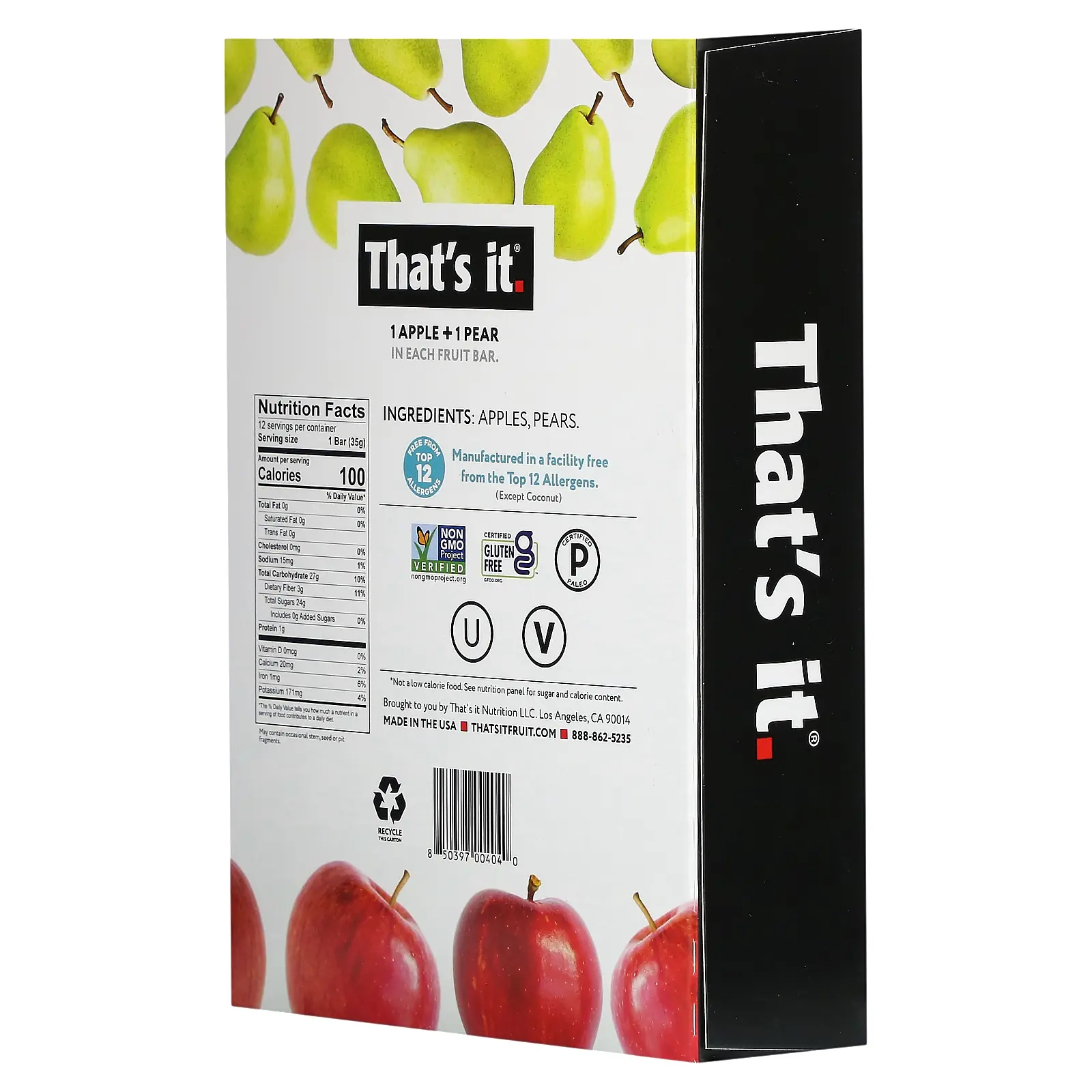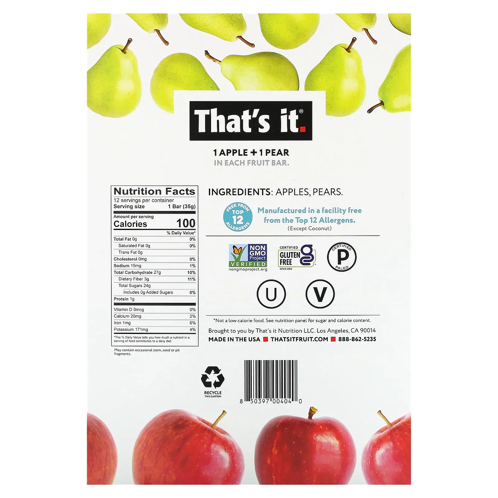 That's It Fruit Bar, Apple + Pear, 12 Bars, 1.2 oz (35 g) Each