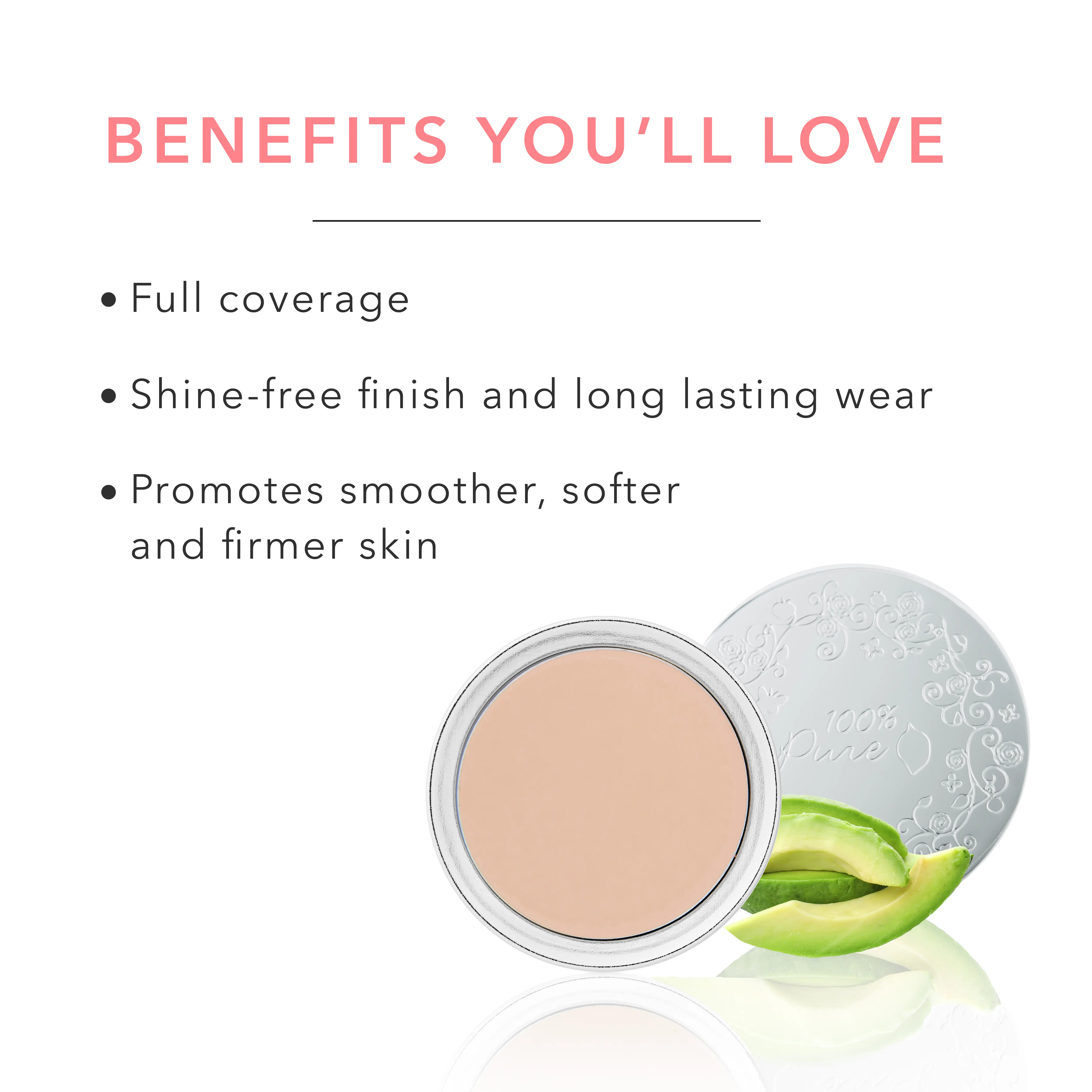 Nourishing cream foundation glides on effortlessly and blends seamlessly for a soft, natural looking finish. Gorgeous pigment from antioxidant-rich fruit and cocoa beans give this foundation buildable medium to full coverage, that lasts all day. Rich and creamy avocado butter pairs with rice powder to deliver a soft satin finish, while botanicals of chamomile and calendula calm and purify your skin for comfortable all-day wear.