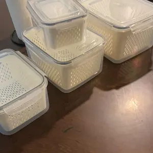 I like this container set. It keeps my fruits and vegetables, fresher longer just as they said the water is not getting to it because of the screen which protects the fruits like my cherries and my grapes keeping them fresh and crisp. Iâm glad I bought it.