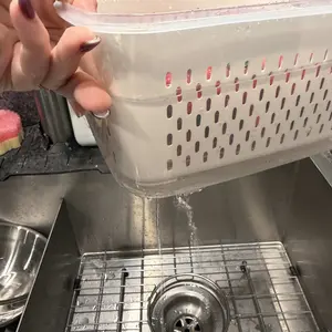 Our refrigerator organizer bins feature a sealed environment created by a sealing ring and locking buckles. This design prevents water loss in food, keeping your fruits fresher for longer. The included basket allows water to drain away from the fruit, maintaining its quality.