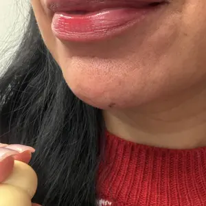 This is my second one. The consistency of this lip stain is like a lip oil, its very hydrating, feels so good. This one was a little more sheer than the fig one i have, which i like. It smells like pear. I want to try all the colors. First picture is right after applying, second pic is 30 min later