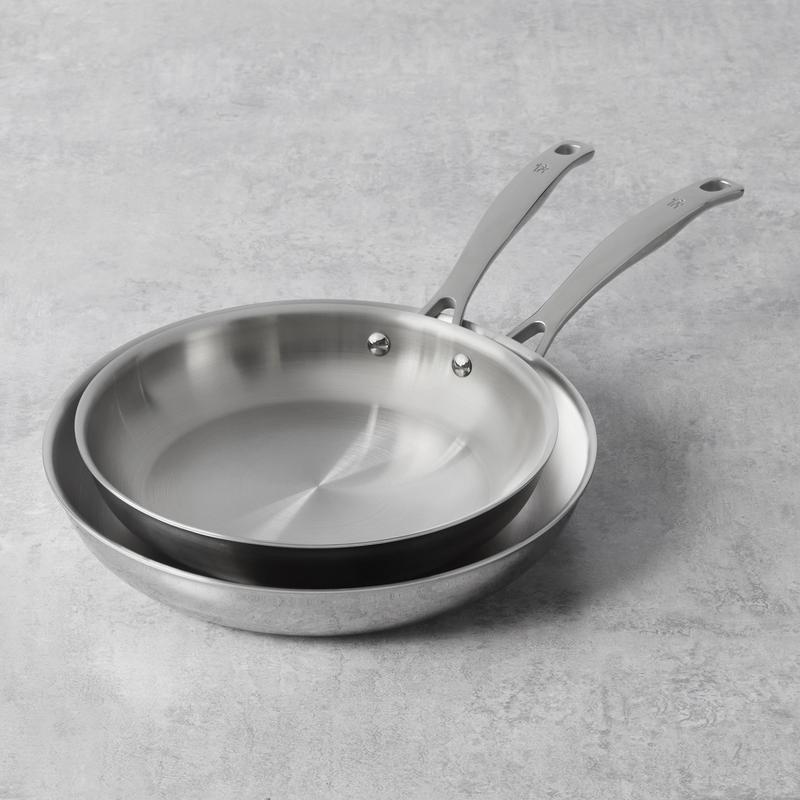 HENCKELS Clad H3 stainless-steel cookware offers exceptional performance combined with durability, technological innovation, and exquisite style. Sear perfectly tender salmon, sauté vegetables, and pan-fry dumplings in the 10-inch fry pan, and make juicy burgers, shallow-fry cutlets, and make a crispy potato hash for the family in the 12-inch fry pan that is perfect when cooking for a crowd.