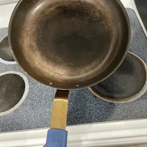 I was so pleased with the communication I got from Misen 2-3 years ago so when my building caught fire recently it was a no brainer where I was buying my next carbon steel pan. So far I’ve cooked 8 large round sausages and a steak. Each time I did a stove top seasoning. I can live with staining as long as I don’t feel sticky bits after cleaning. From my understanding all germs are killed over 150 degrees and I mostly use 300 degrees and above according to the laser gun I had. I’ll miss my 12” CS pan on French Toast Day. That size would allow me to add 2 slices at a time and I’d do the whole loaf. I bought the 10” because I wanted to see if it worked better on an 8” electric coil. I always used tongs with rubber tips but a SS was donated. I’ll get there. Please remember it’s not always gonna look pretty but there non stick was still pretty after 3 years.