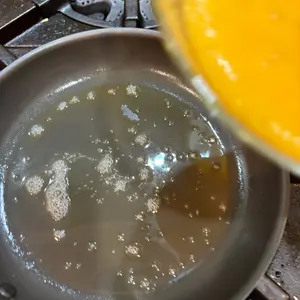 After dropping my eggs on the pan I move the pan around and my eggs are floating. I have to be careful that they don’t fly off the pan when I move them around. Perfection!