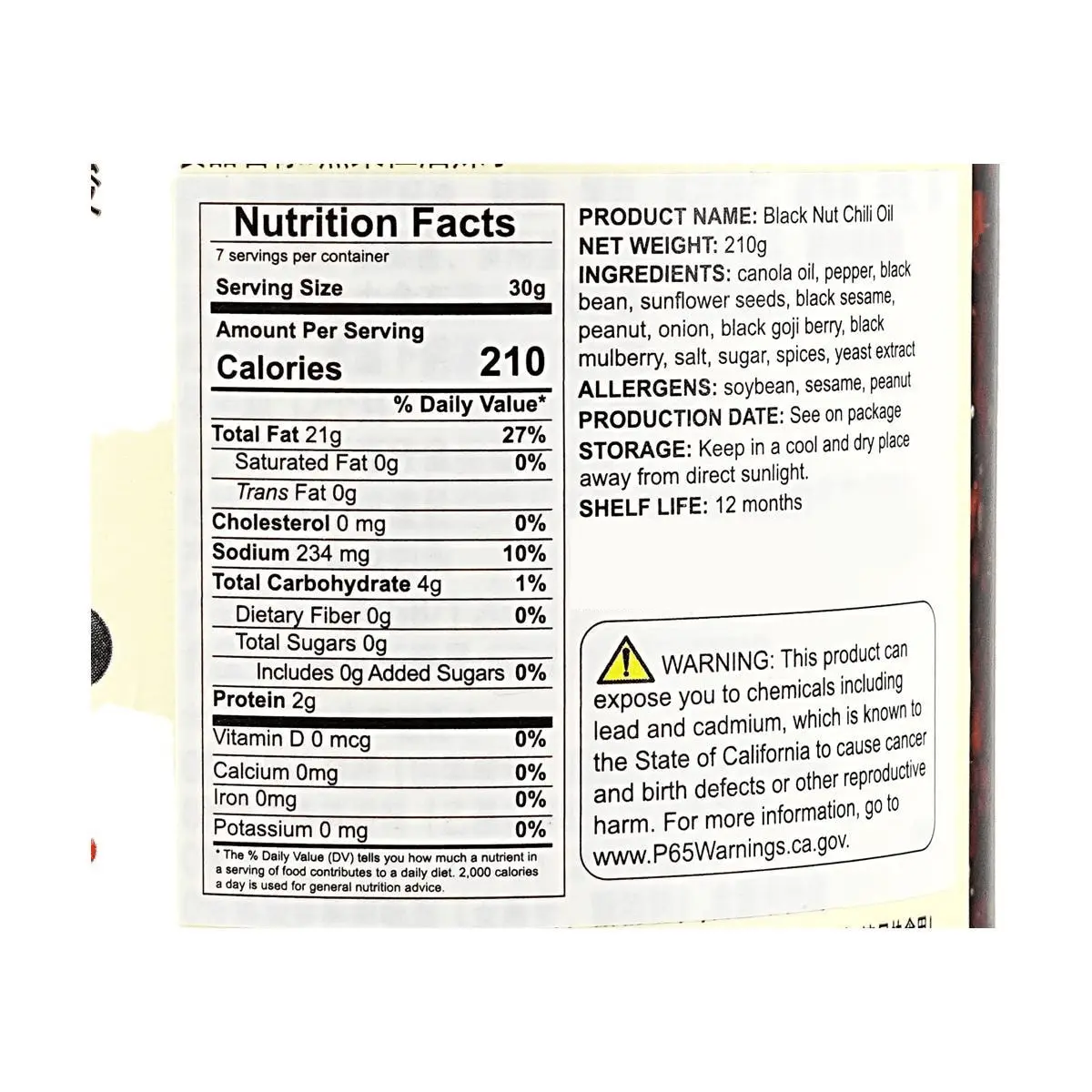 5. FSG Black Chili Oil with Black Sesame Seeds - Authentic Sichuan Flavor, 210g Jar, No Preservatives or Artificial Colors, Perfect for Noodles, Rice, Stir-fries & Cold Dishes