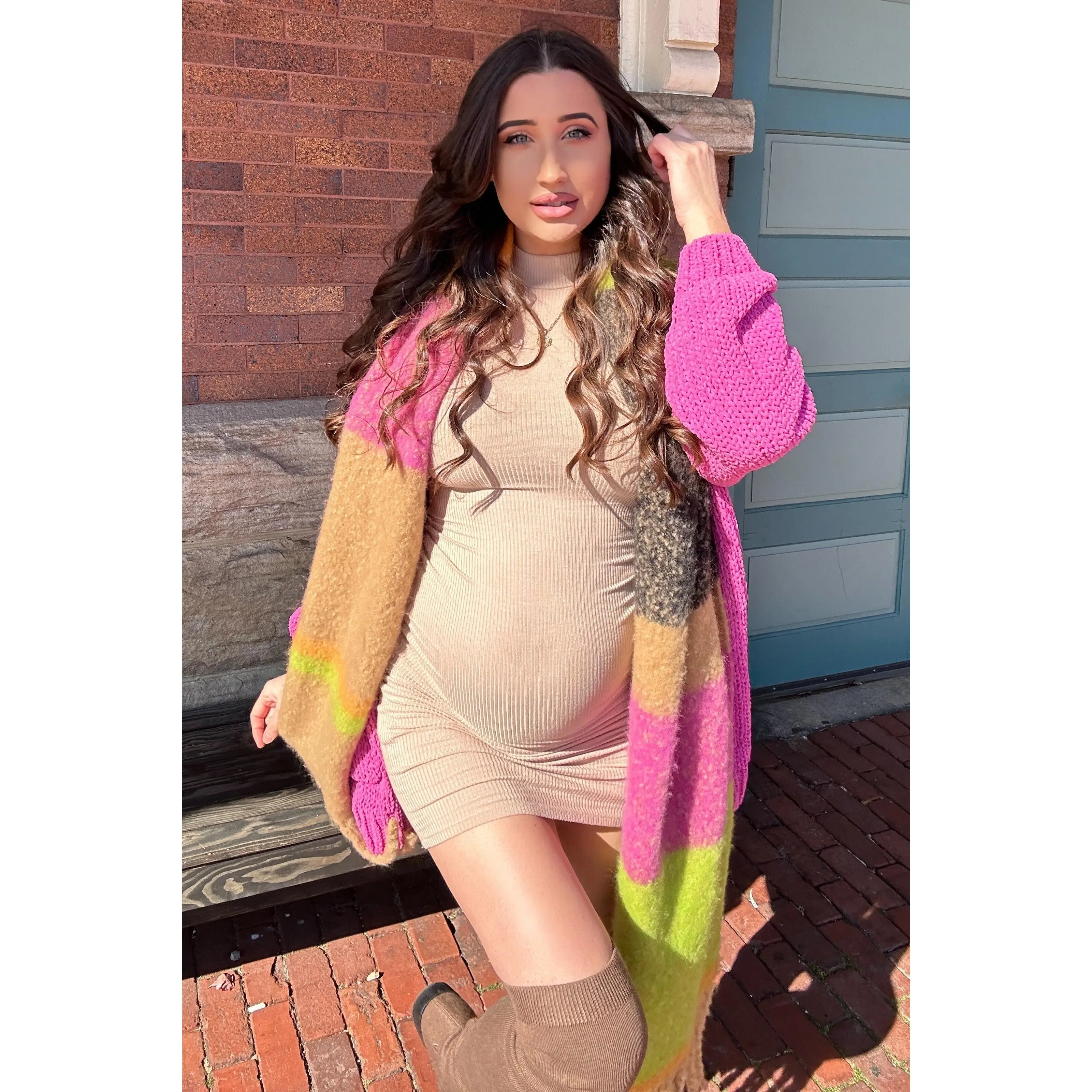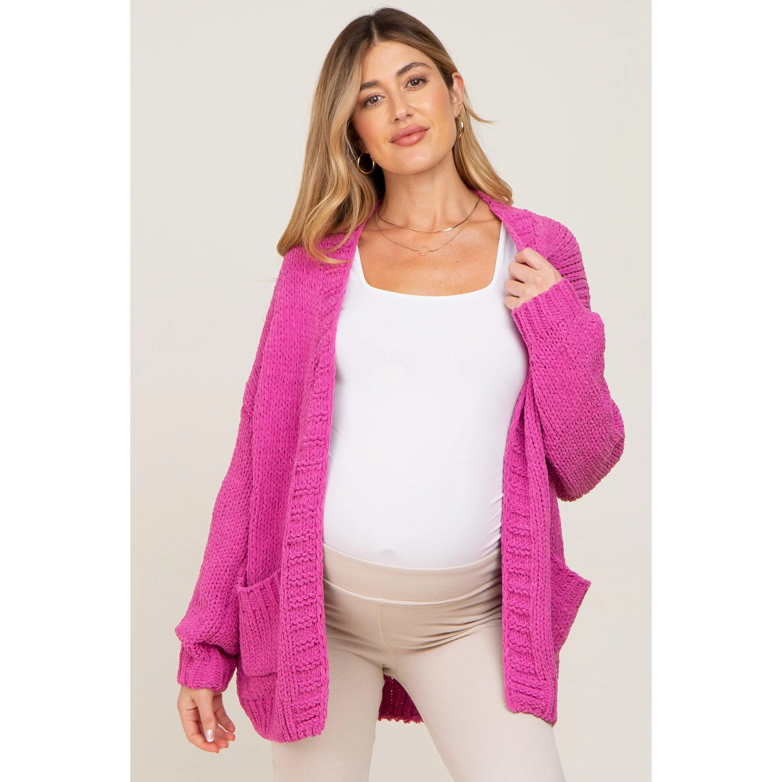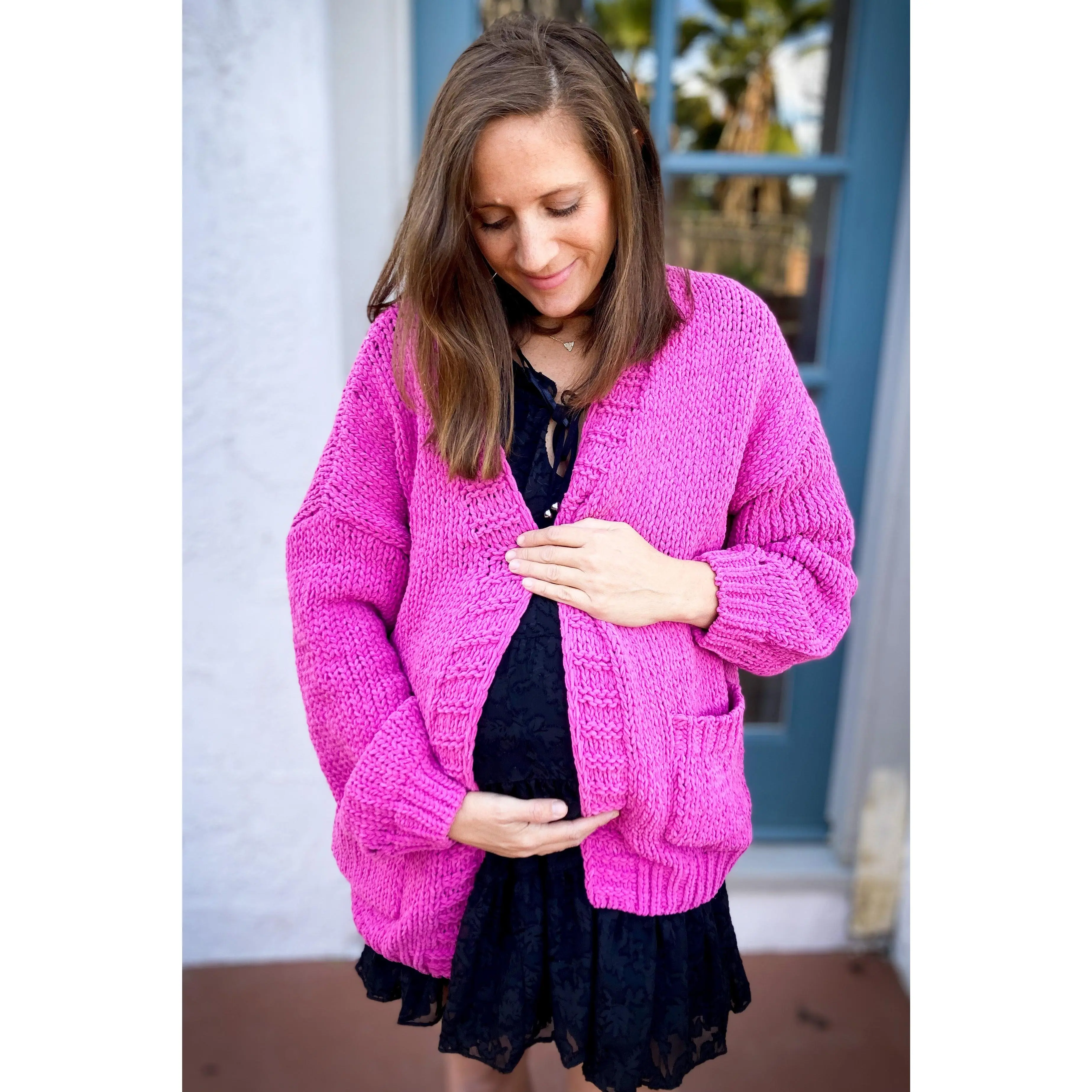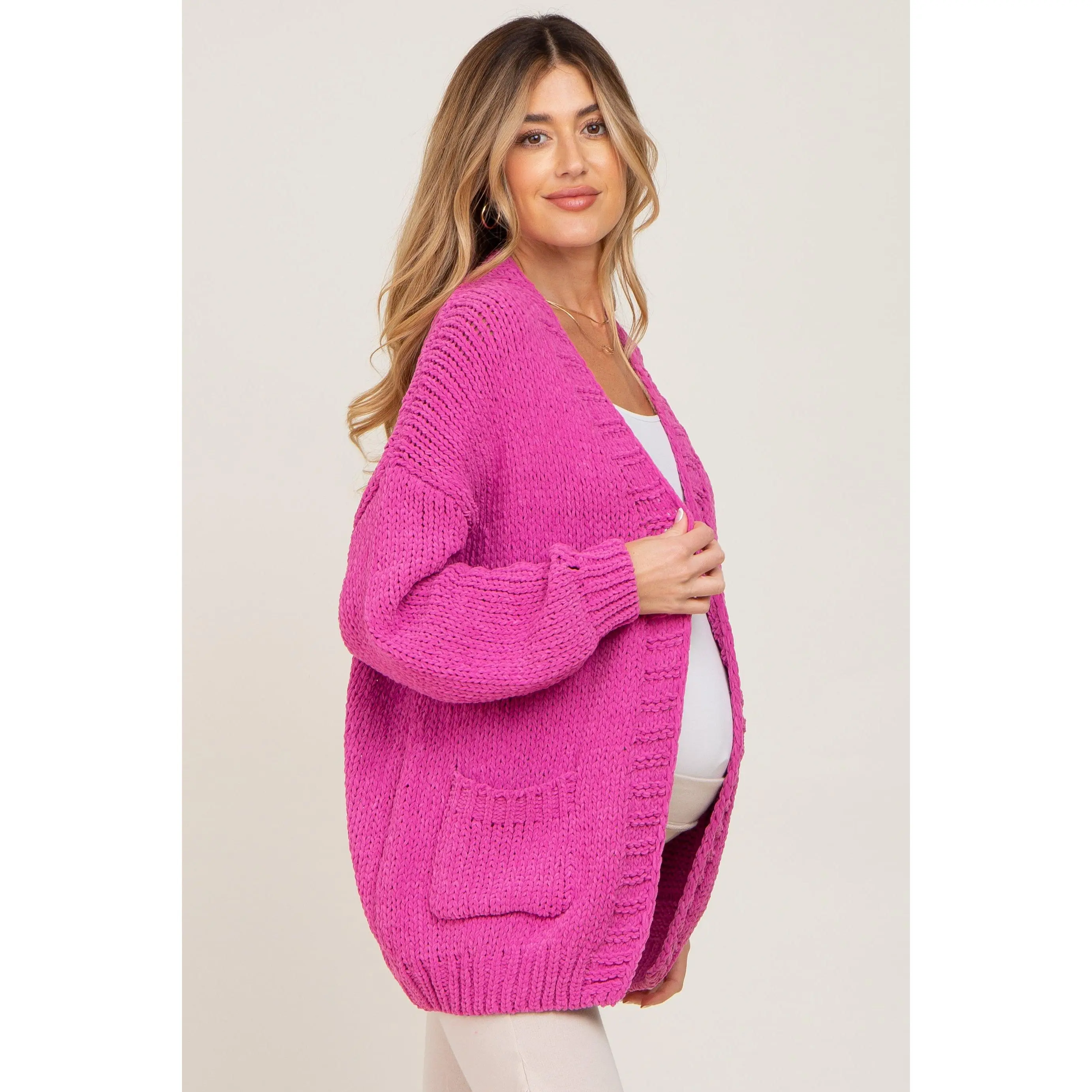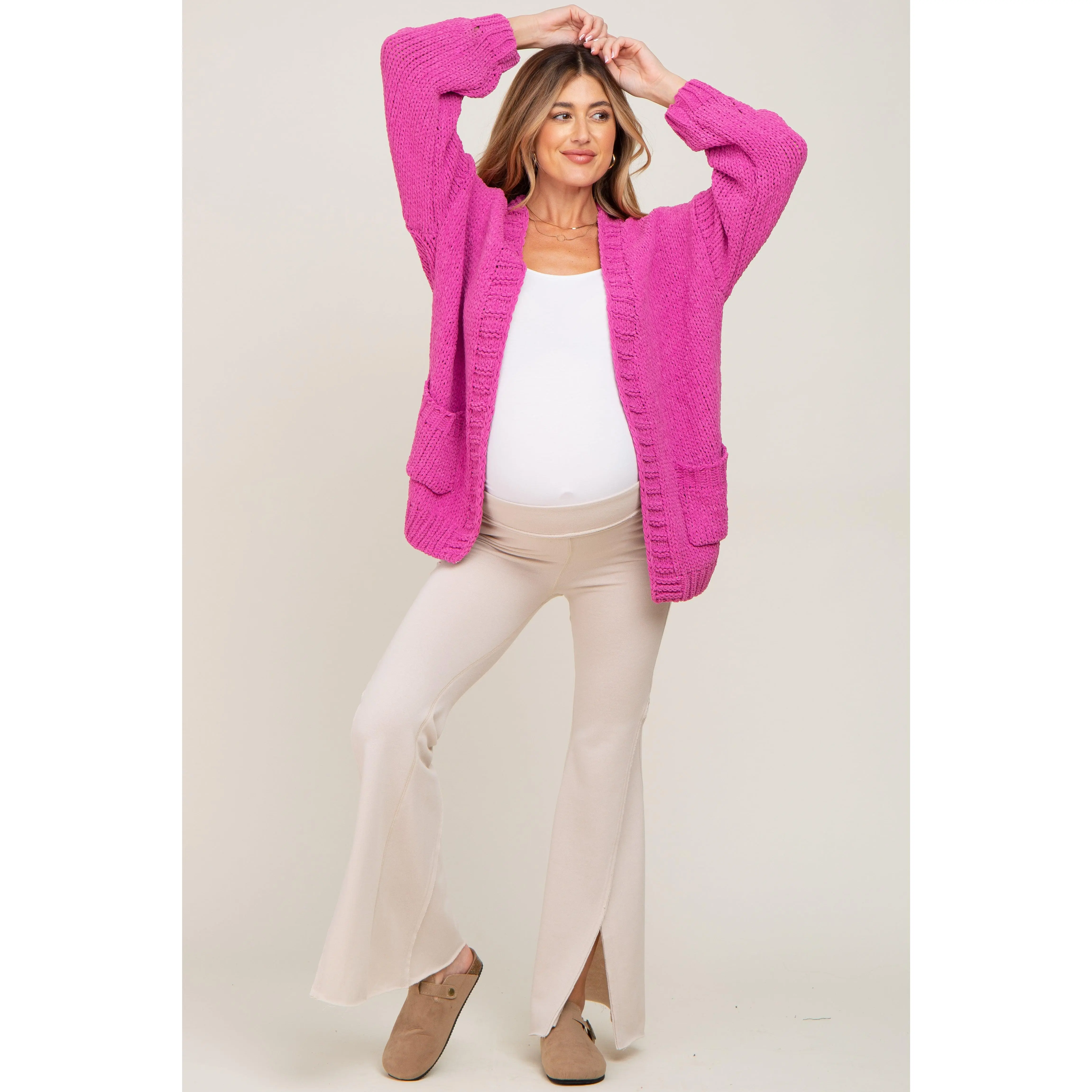 5. Fuchsia Oversized Bubble Sleeve Maternity Cardigan