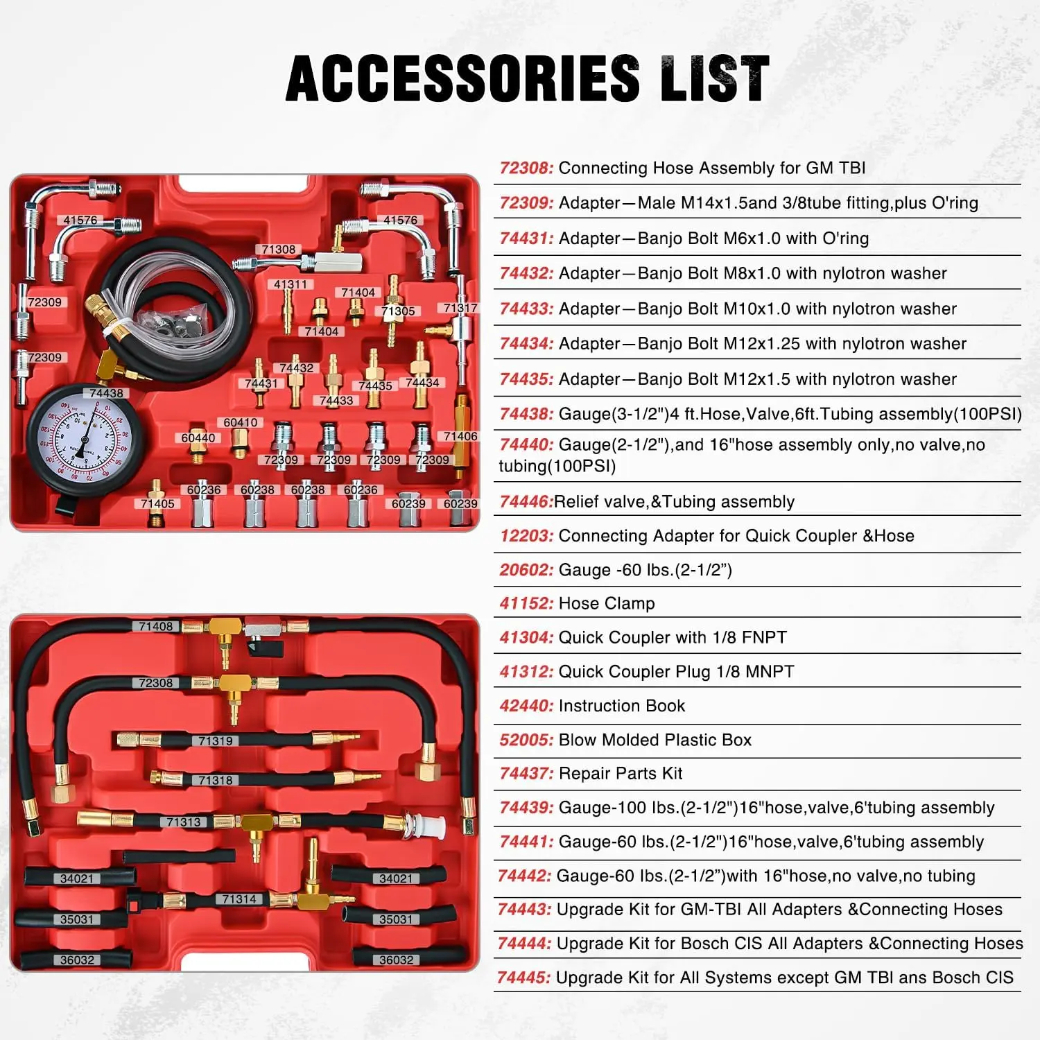 ·Function: This comprehensive fuel pressure tester is adept at swiftly and efficiently assessing fuel injection pump pressure. It can diagnose potential leaks and pressure issues accurately and timeously
