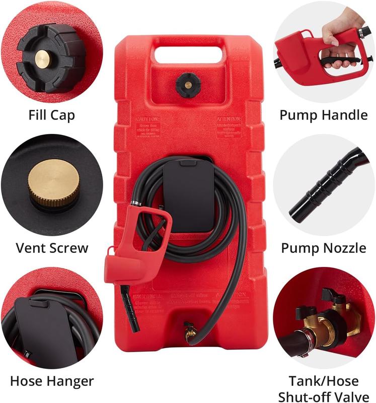 【Versatile Application】Our portable fuel tank is not limited to specific vehicles or equipment. It can be conveniently stored in various locations such as truck trunks, garages, toolkits, or sheds. Whether you need to deliver gasoline, diesel fuel, kerosene, or light oil, this liquid fuel can ensures fast, clean, and reliable fueling for cars, motorcycles, boats, lawn mowers, snow blowers, generators, and more