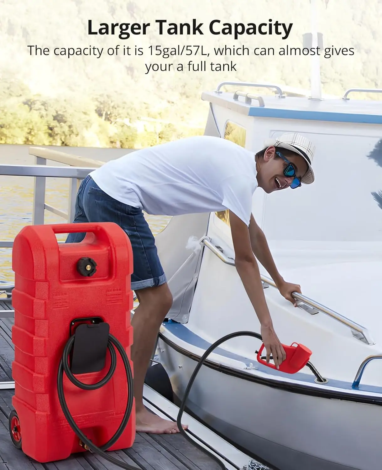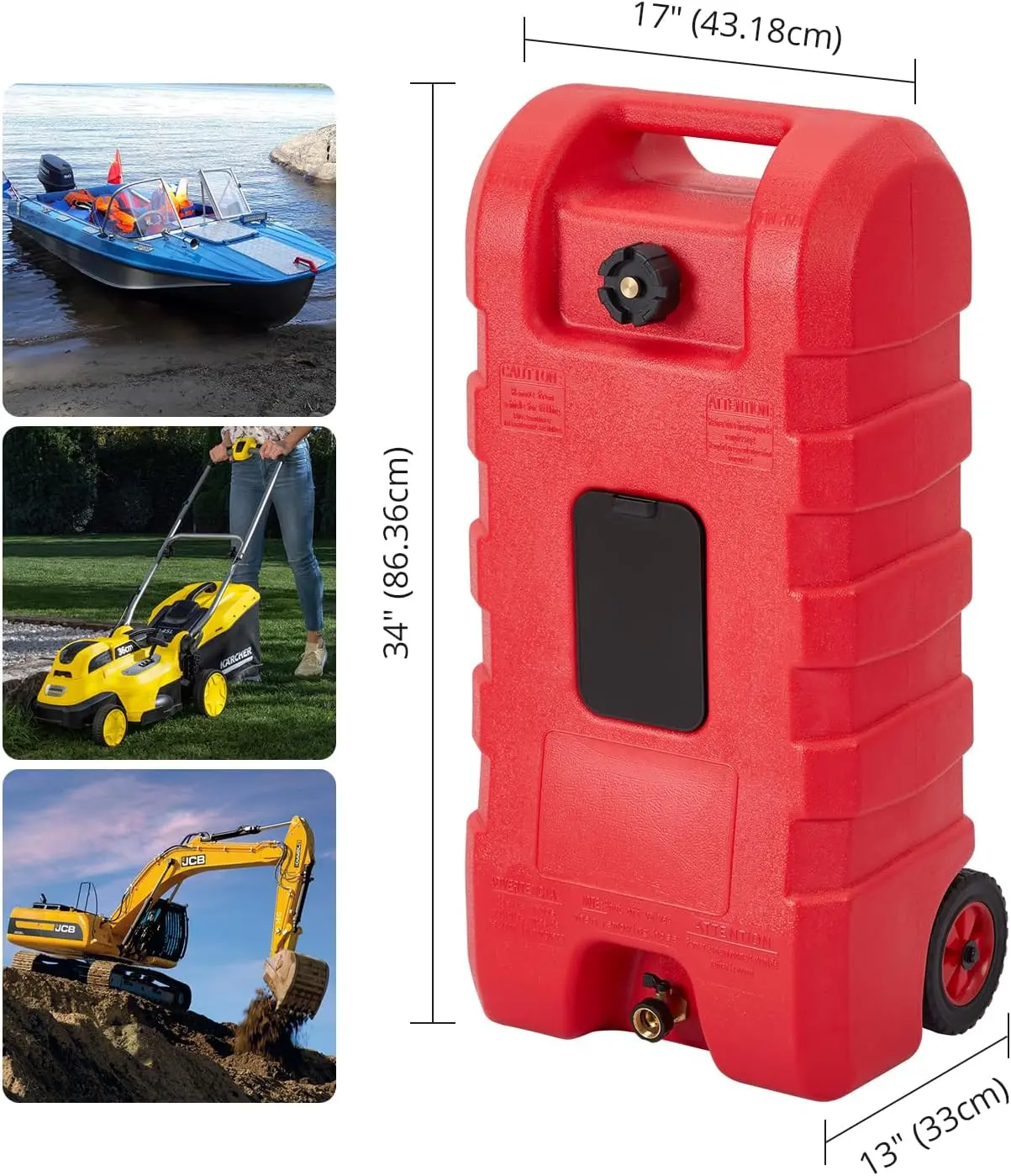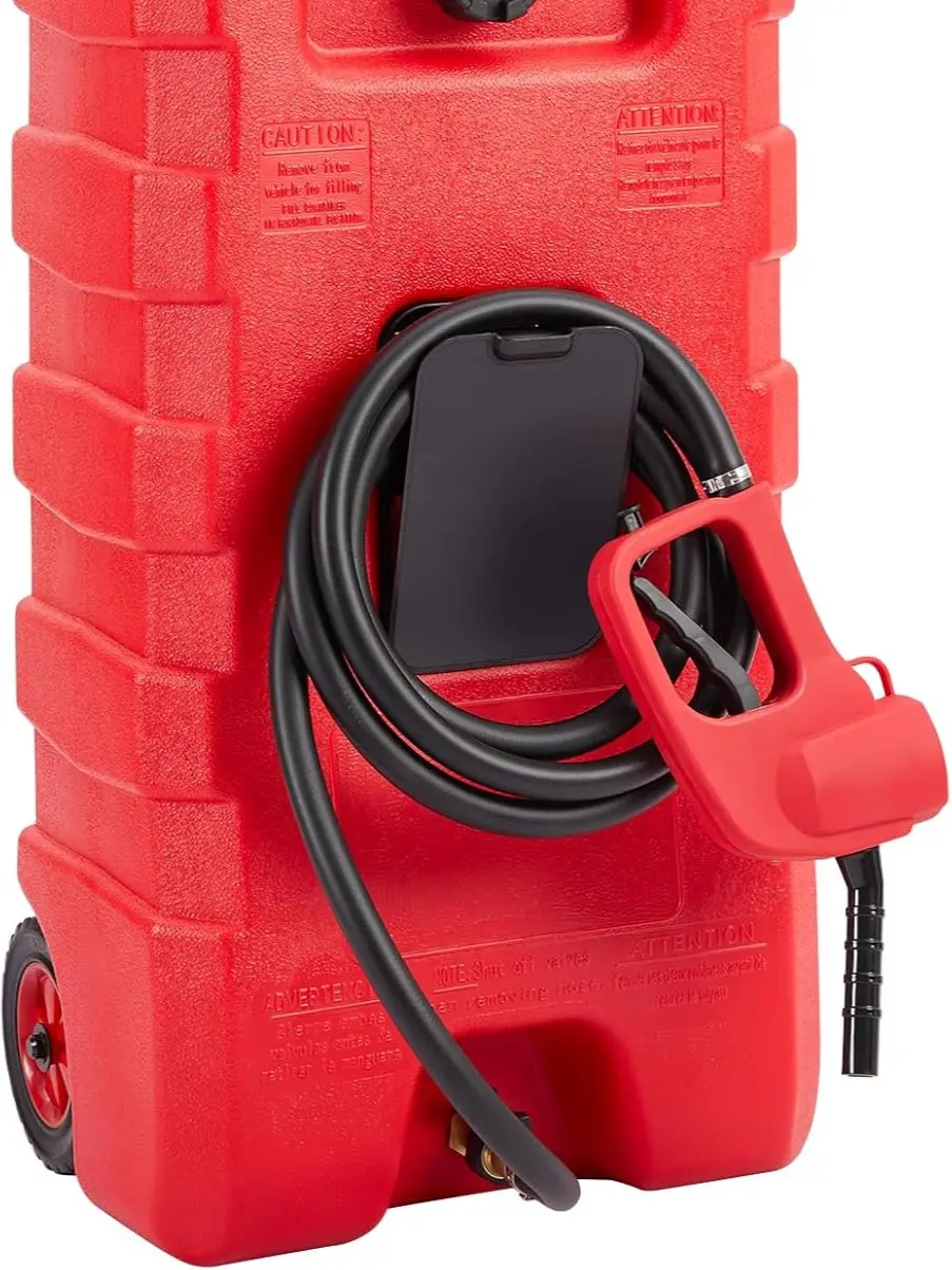 【Easy on the go】Designed with your ease in mind, our fuel can is highly portable and easy to transport. It features two sturdy 6-inch wheels and a molded top handle, allowing for effortless maneuverability over various terrains. Whether you're refueling small vessels or transporting fuel to different locations, our tank is your reliable companion