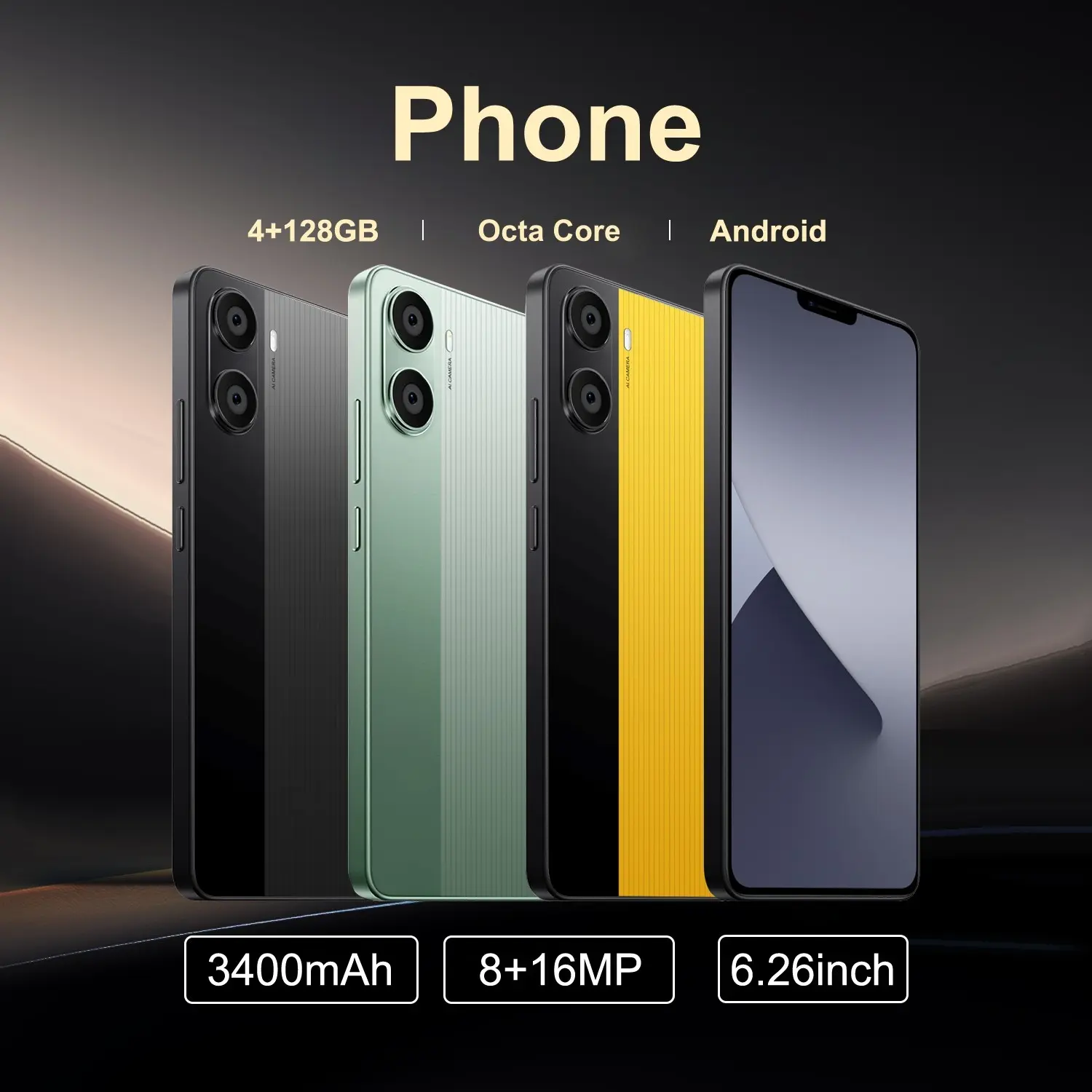 Fuffi Smartphone Mobile Phone 6.26 Inches 4GB RAM 128GB ROM, 8mp + 16mp Cameras, 4g Network, 3400mah Battery, Android Dual Sim Card, Quad-Core Processor Cellphone
