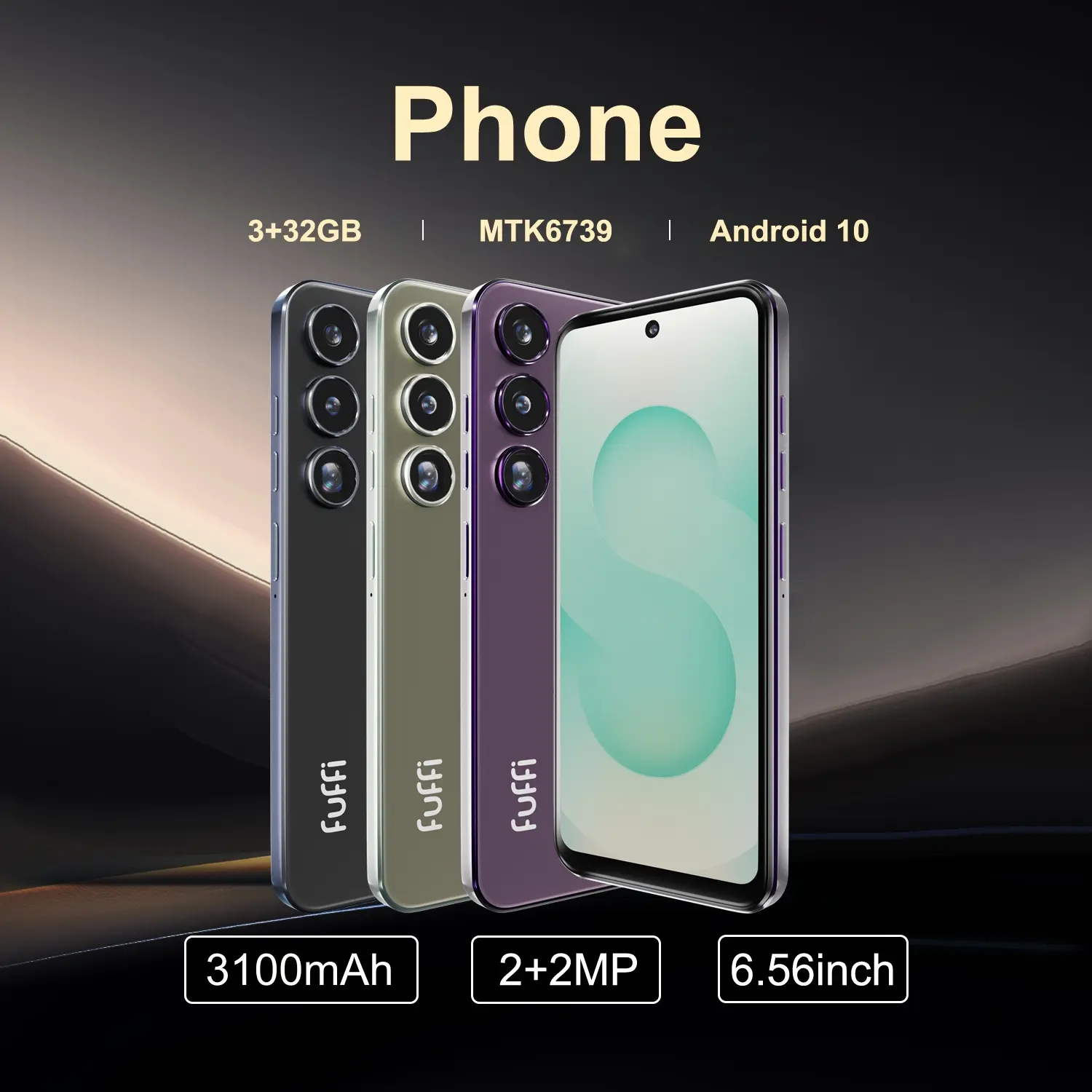 FUFFi-Smartphone, 6.56-Inch Screen, Unlock 4G Network, Android 10.0, 3+32GB Memory, 3100mah Battery, Dual Sim, Quad-Core Processor, Fashion Phone, Cellphone