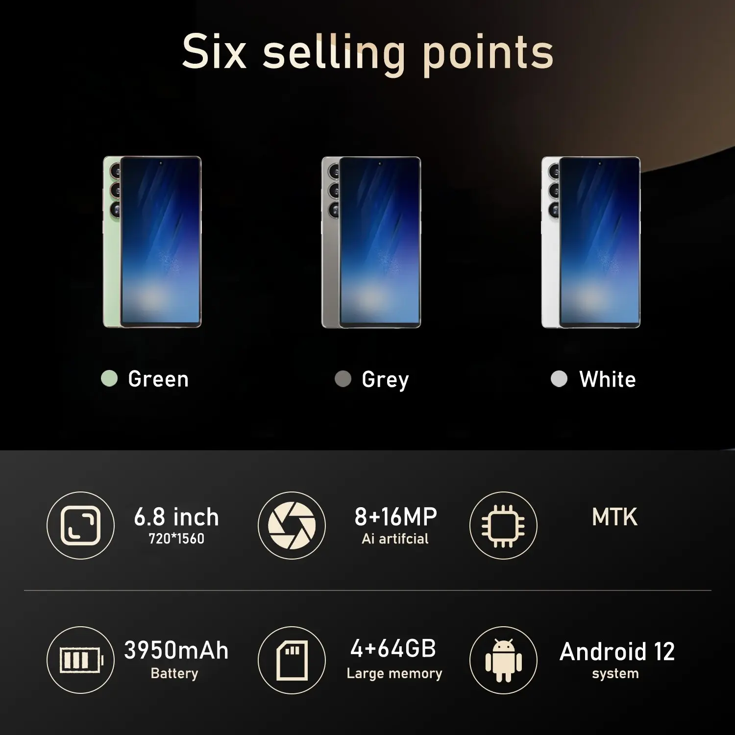 【Large Display】: Featuring a 6.8-inch screen, this smartphone provides an immersive viewing experience for videos and games.
