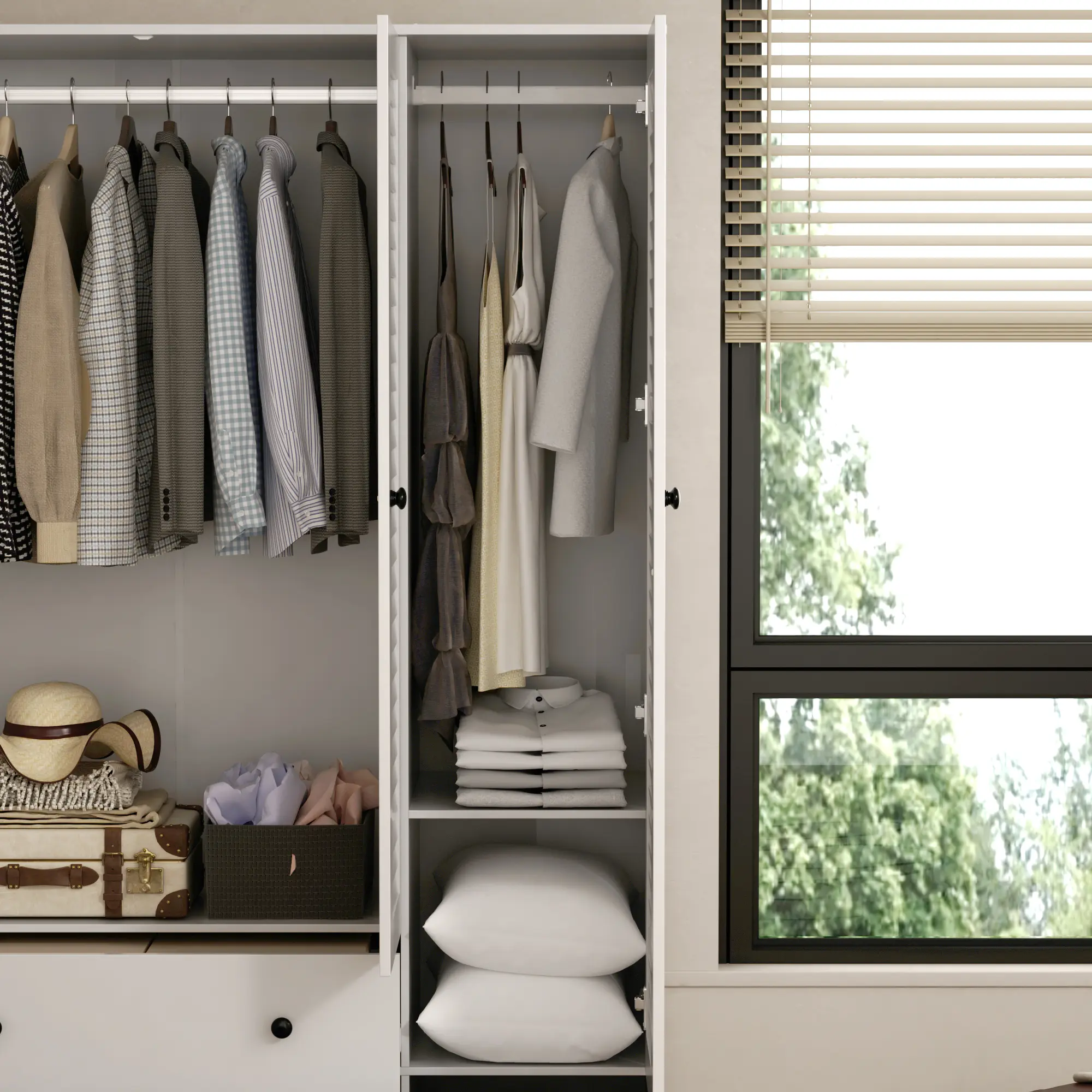 This wardrobe is suitable for kids' and adult bedrooms, fitting rooms, living rooms, offices, schools, and hospitals. It's made of thick engineered MDF board, ensuring strong bearing capacity. 🏠