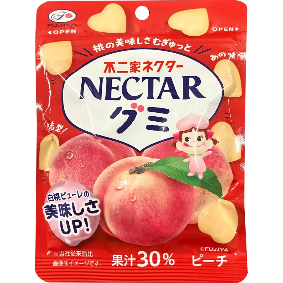 [Juicy & Chewy]: Soft gummy candy infused with the sweet and refreshing flavor of Fujiya’s signature peach nectar.