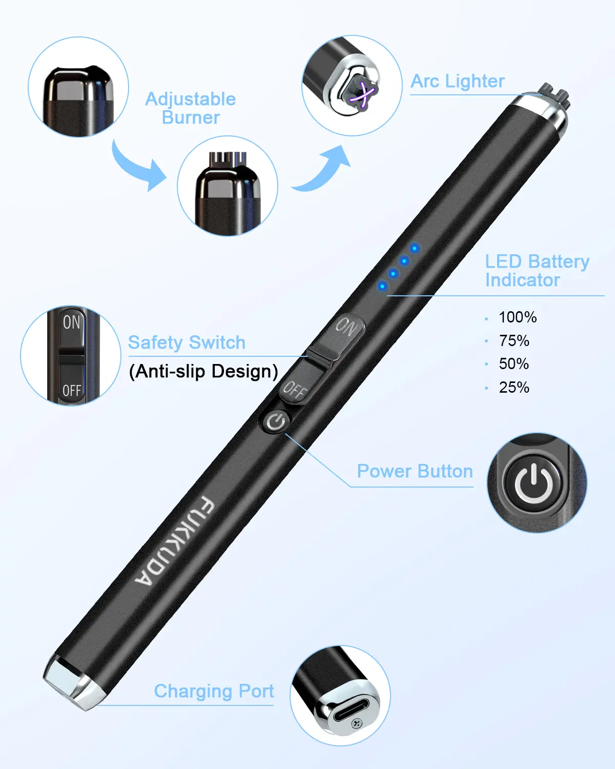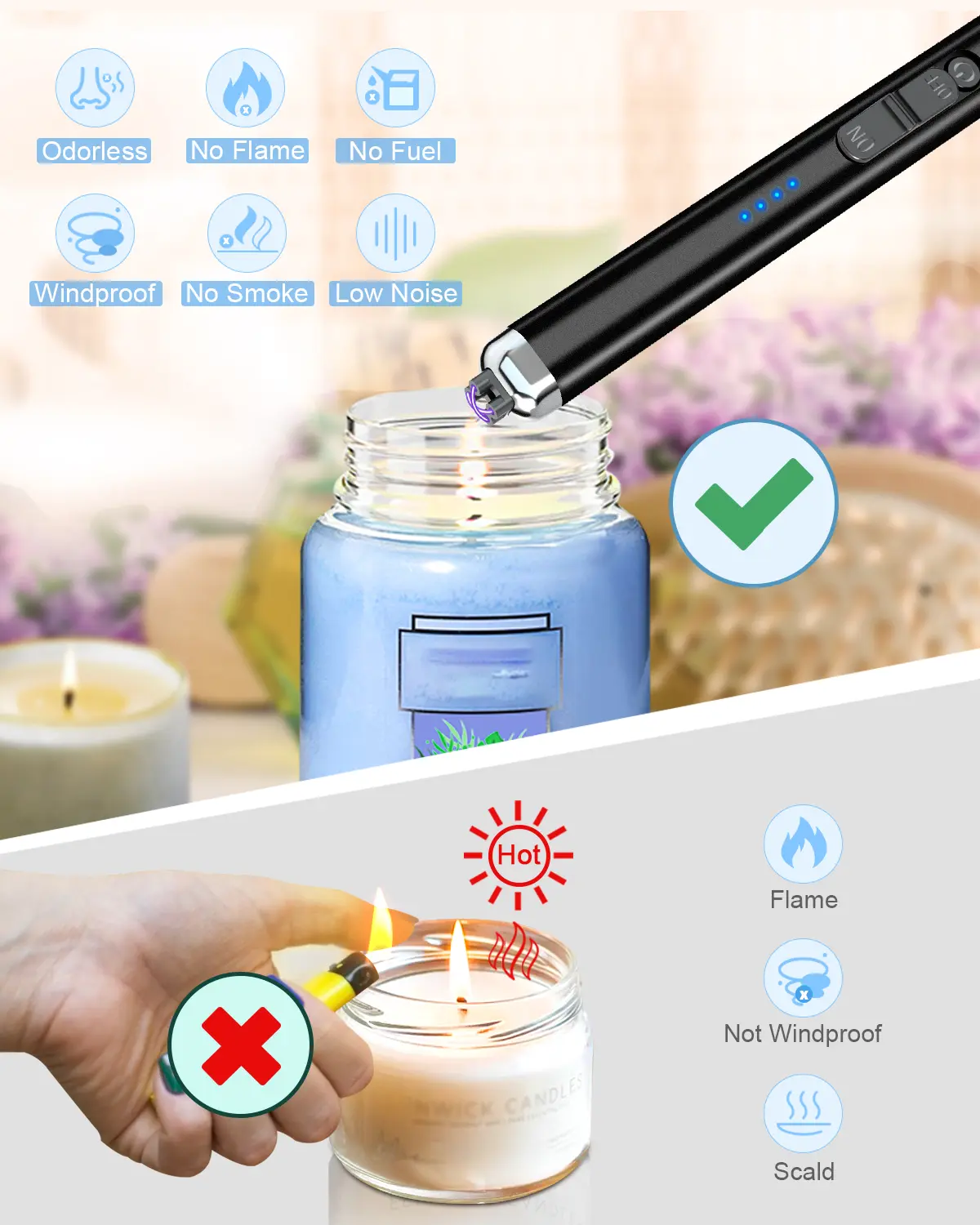 ·【More Efficient Ignition Method】- Comparing to the traditional lighters and matches, the lighter can ignite candles, stoves, fireworks and etc. in a more convenient, safer and faster manner. No flame, thus it will never burn your fingers when using, and no more harmful gas!