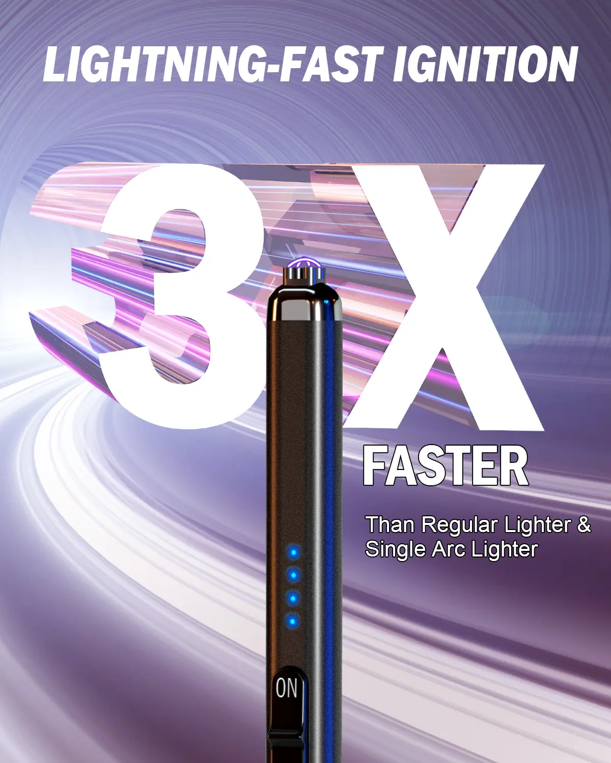 ·【Innovative Dual Arc】- UPGRADED DUAL ELECTRIC ARC with revealed ignition contacts, which would increase ignition area and speed. The ignition speed is 3 times faster than the single arc lighter, and also provides more application scenarios.