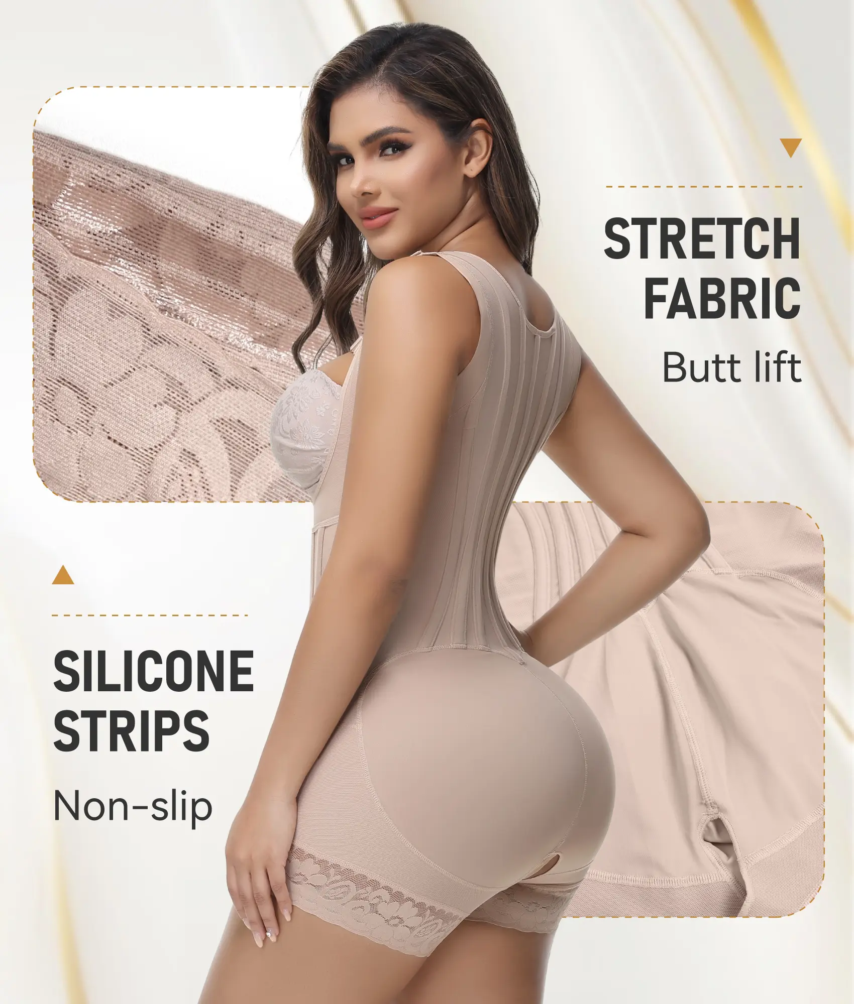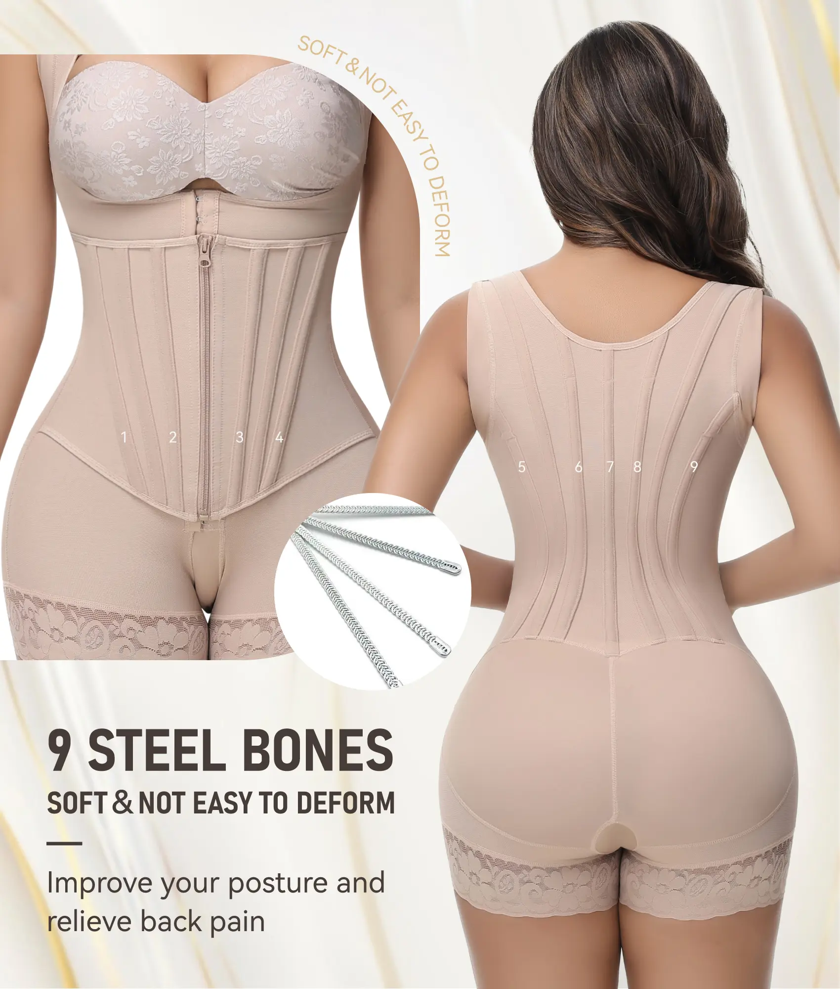 ·【TRIPLE HIGH COMPRESSION】 3 rows of hook + zipper + 4 steel bones design allows your fat to go to the right place! You can make 3-level adjustments according to stage, occasion, and comfort level, it can help you effectively reduce swelling, assist healing and reshaping. The zipper can make the fajas moldeadoras invisible under the clothes, no need to worry