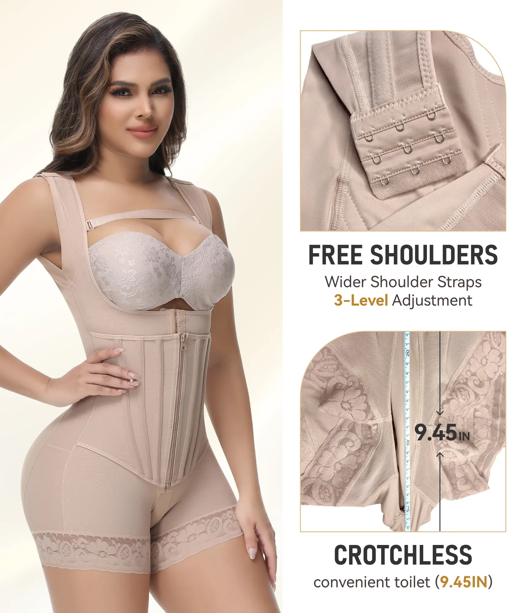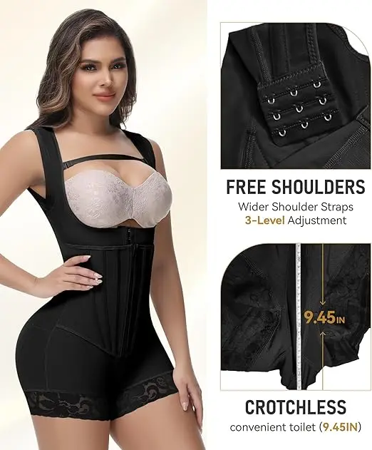 ·【EXTENDED SHOULDER STRAPS】 We had models of different body types try it on and increased the width of the faja body shaper shoulder straps and 3-level adjustment hooks again to relieve shoulder pressure