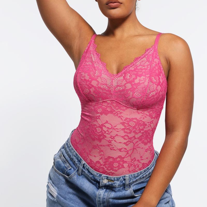 Can't wait to wear this. Will pair it with jeans and heels. Don't have to wear a bra. Slightly see through but who cares. Gives major wedgie. I ordered XL. Size 16, 215lbs, 40C, 5'10. Had to jump to put it on. Love it