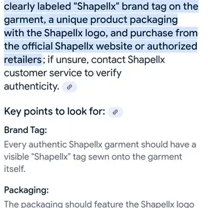 A TRUE SHAPELLX PRODUCT HAS A SHAPELLX TAG ON IT AND OTHER TAGS AS WELL AS THEIR BAG WITH THE LOGO, THE WHITE STIKER LABEL OK THE BAGS ALSO HAVE THE SHAPELLX NAME BUT THIA YAS ABSOLUTELY NOTHING AS WELL AS THE BLACK AND WHITE.