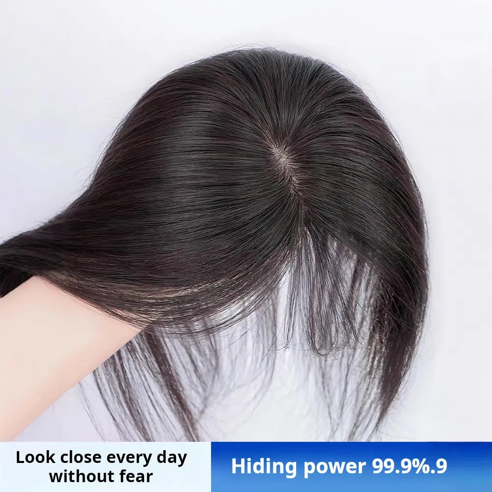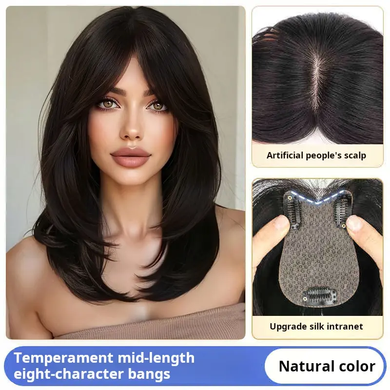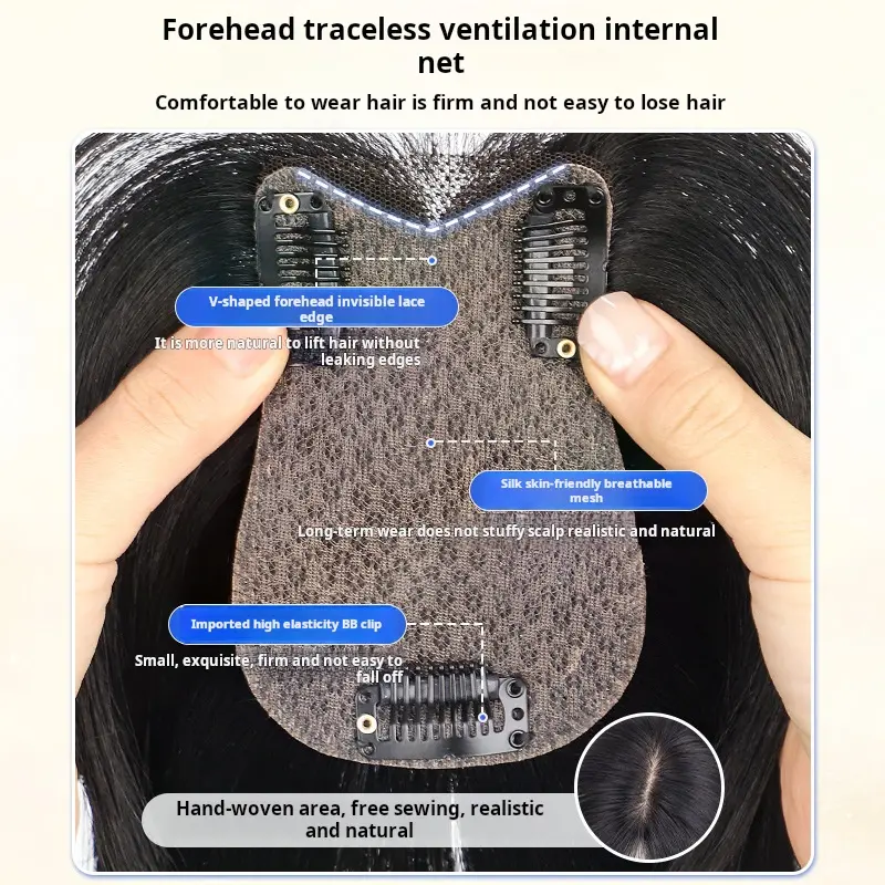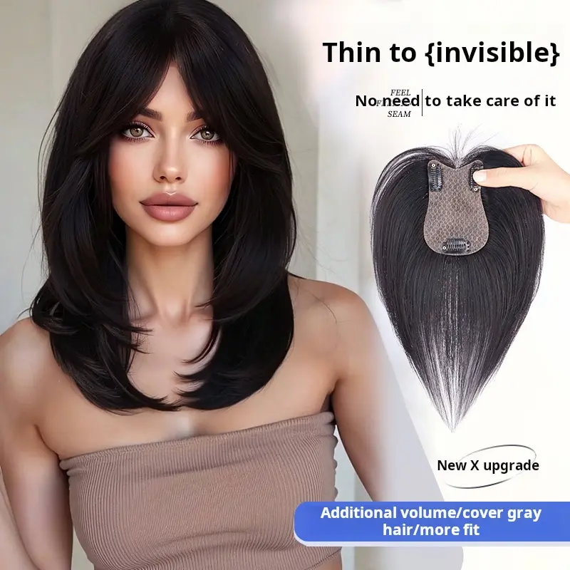 French Air Bangs / Curtain Bangs clip-in hair topper for women adds volume on top covers gray can part freely natural hairline real bangs Lightweight Breathable Human Hair Topper 250% Density 10-Inch Straight Hair Extension 8*11 Silk Base