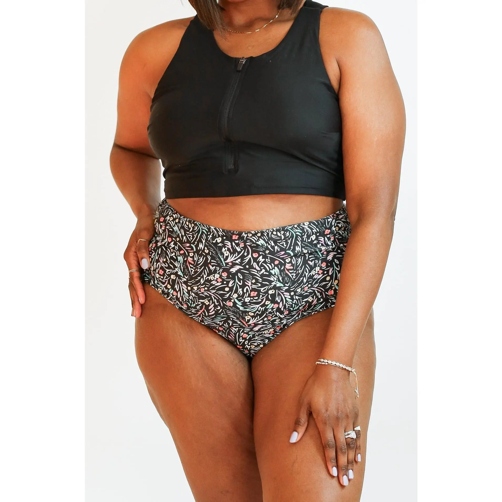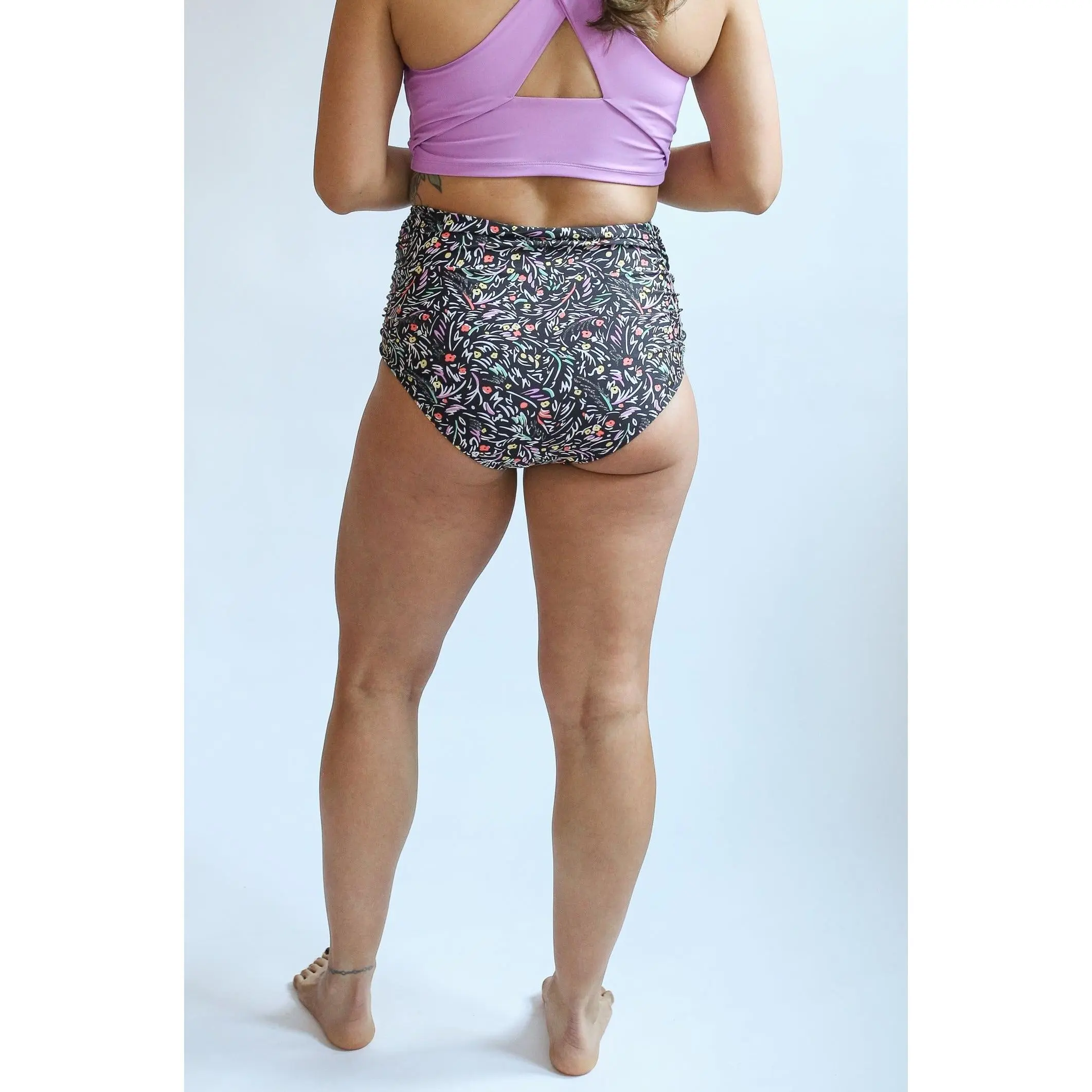 ·High rise bikini bottoms with a fuller rear coverage (without matching your baby's diaper :) )
