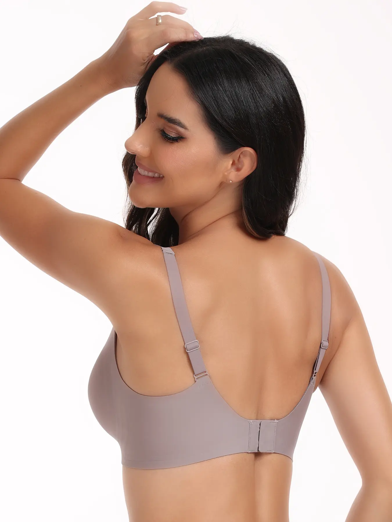 EssElegance Bra with Seamless Back Smoothing & Posture Support. Features Backless Lift Technology and Wire-Free Push-Up Style. Unlined, Ultra-Breathable Comfort for Everyday, Livestream, & Formal Events. tshirt approved zip front nonslip yoga