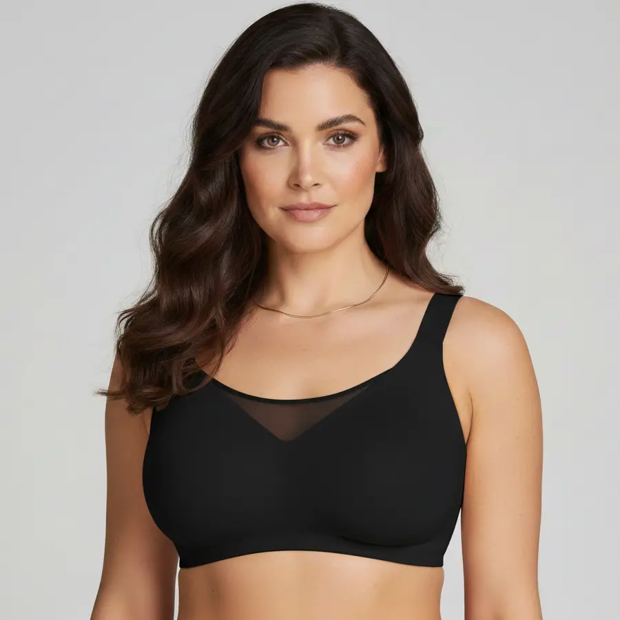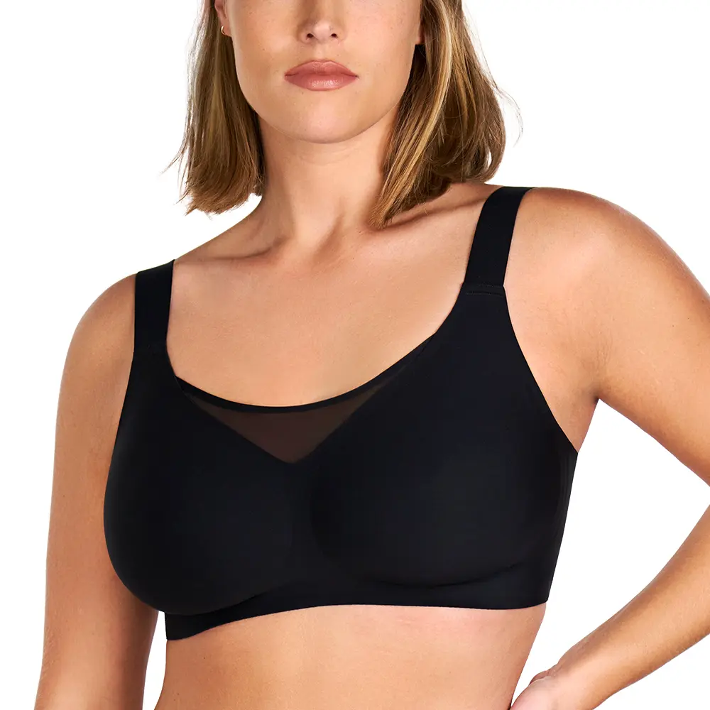 Crafted with a premium blend of 76.5% Nylon and 23.5% Spandex, this no-underwire bra offers a smooth, buttery-soft, and silky feel that gently hugs your skin. The lightweight, stretchy material moves with you, delivering unparalleled comfort and support without compromising on style.