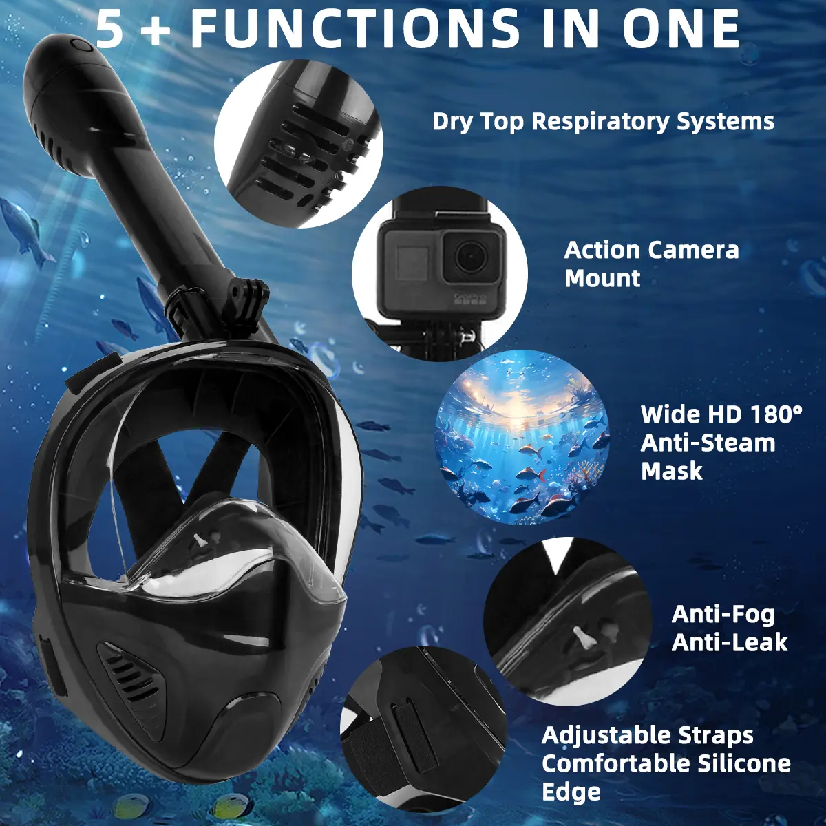 With a 180° panoramic view, you'll find yourself seeing more fish and marine life than ever before. Plus, the detachable camera stand allows you to attach your camera, capture your adventures, and share them with friends and family.