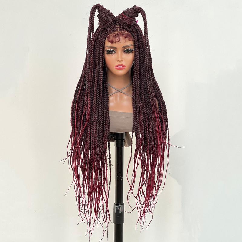 Elevate your look with the SuperNova #T1B/Burgundy Colored Full Lace Braided Wig. Designed especially for black women, this synthetic braided lace wig is perfect for adding length and volume to your hair with minimal effort.