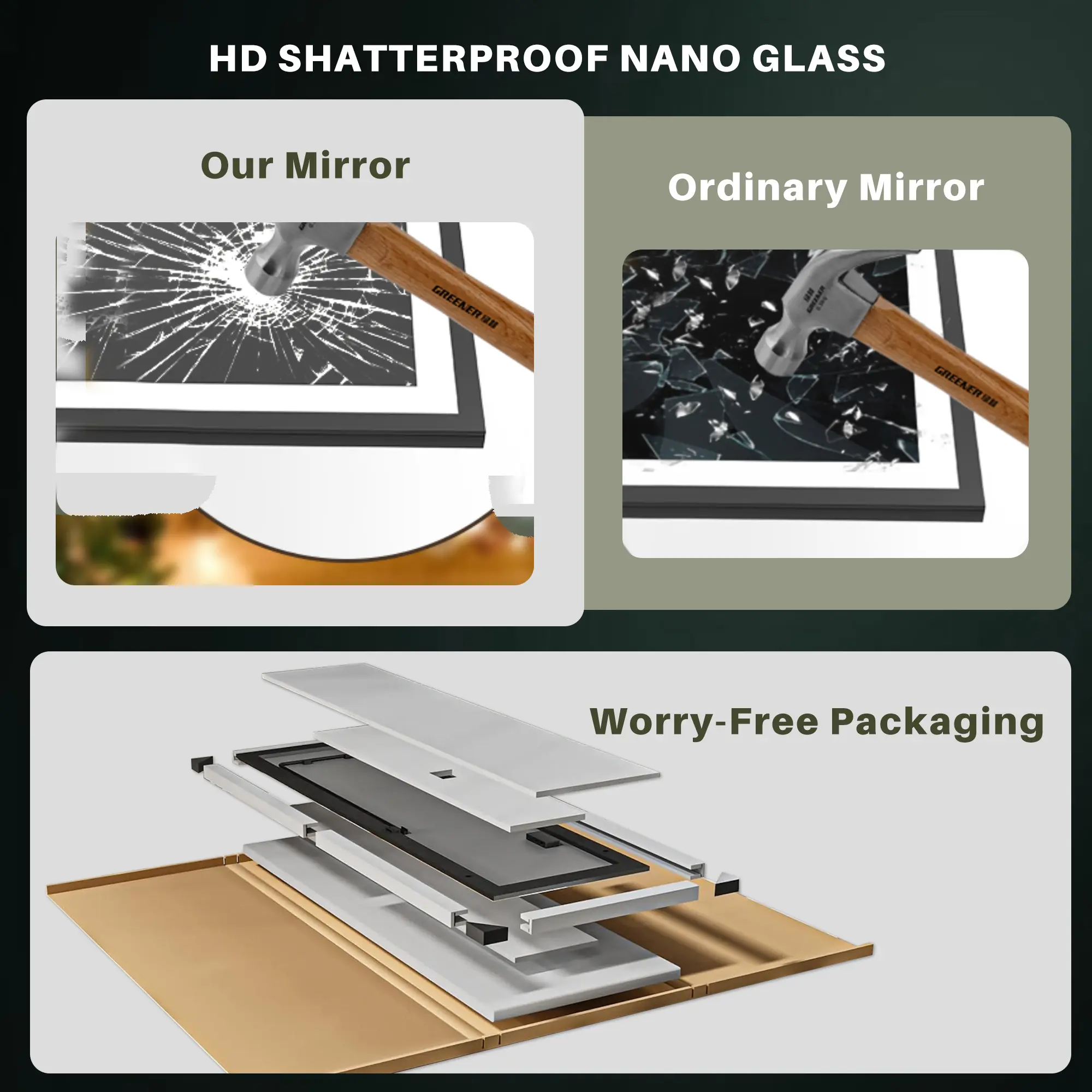 100% REFUND/REPLACEMENT: Our mirror packaging fully passes international drop tests. If the product arrives damaged, contact us for a full refund or free replacement without needing to return the damaged mirror.