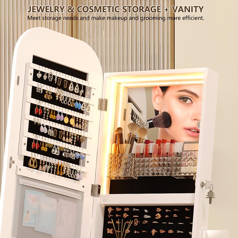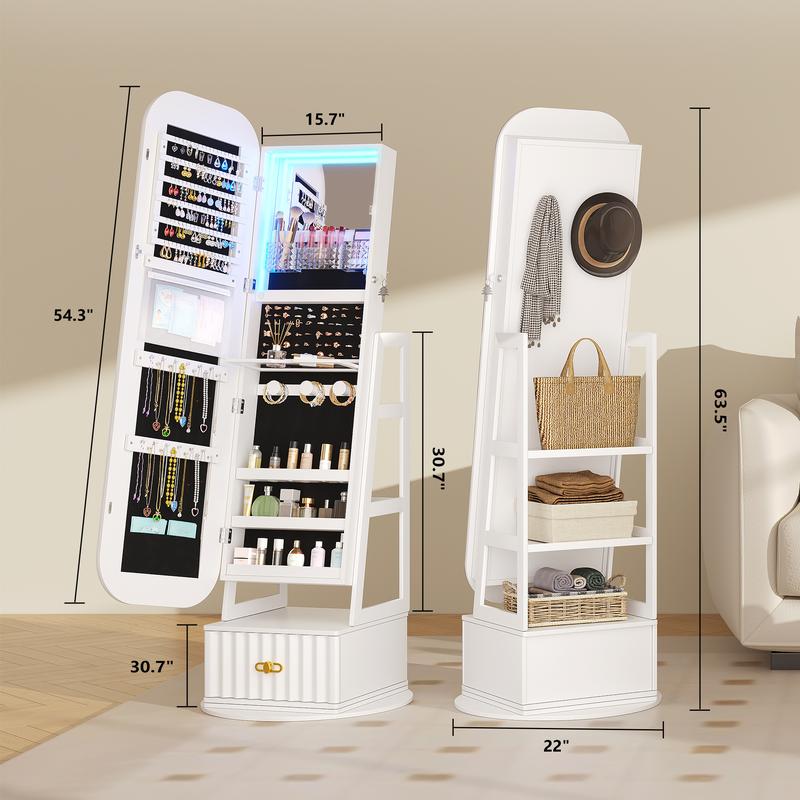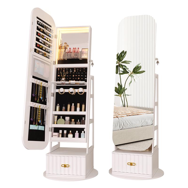 Miuvanity Round-Corner Design Full-Length Mirror with 360° Swivel & LED-Lit Features, Bottom Drawer Storage, Lockable Design living room decorMiuvanity Round-Corner Design Full-Length Mirror with 360° Swivel & LED-Lit Features, Bottom Drawer Storage, Lockable Design living room decor