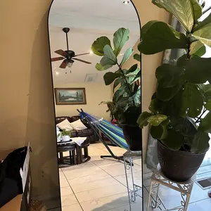 ·ALUMINUM ALLOY FRAME: The wall mirror full length is surrounded by anti-rust and colorfast aluminum alloy. The very thin frame (only 0.23" wide on the front), is durable and has a shiny appearance. Wire drawing treat, more stylish and textured.
