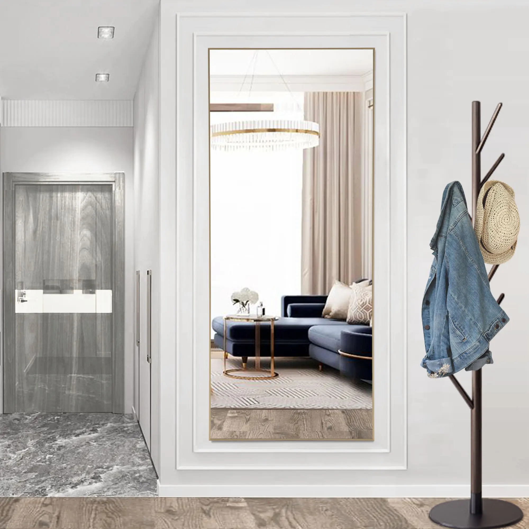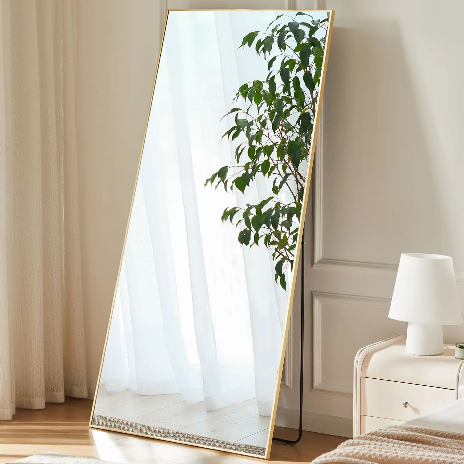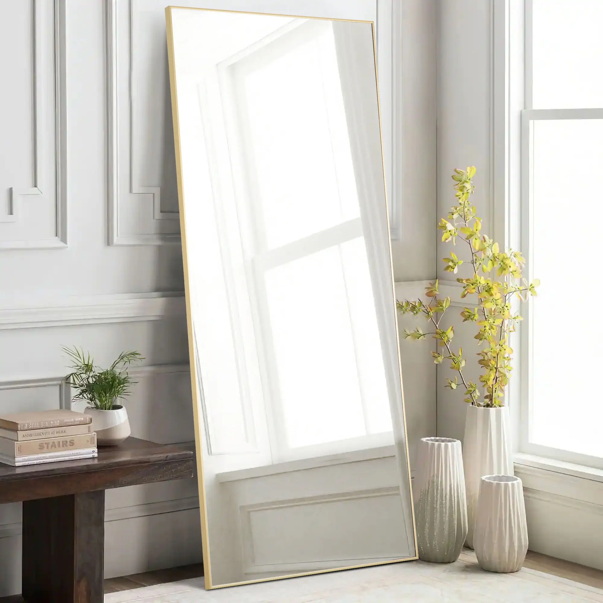 ·ALUMINUM ALLOY FRAME: The wall mirror full length is surrounded by anti-rust and colorfast aluminum alloy. The very thin frame (only 0.23" wide on the front), is durable and has a shiny appearance. Wire drawing treats are simpler and more textured.