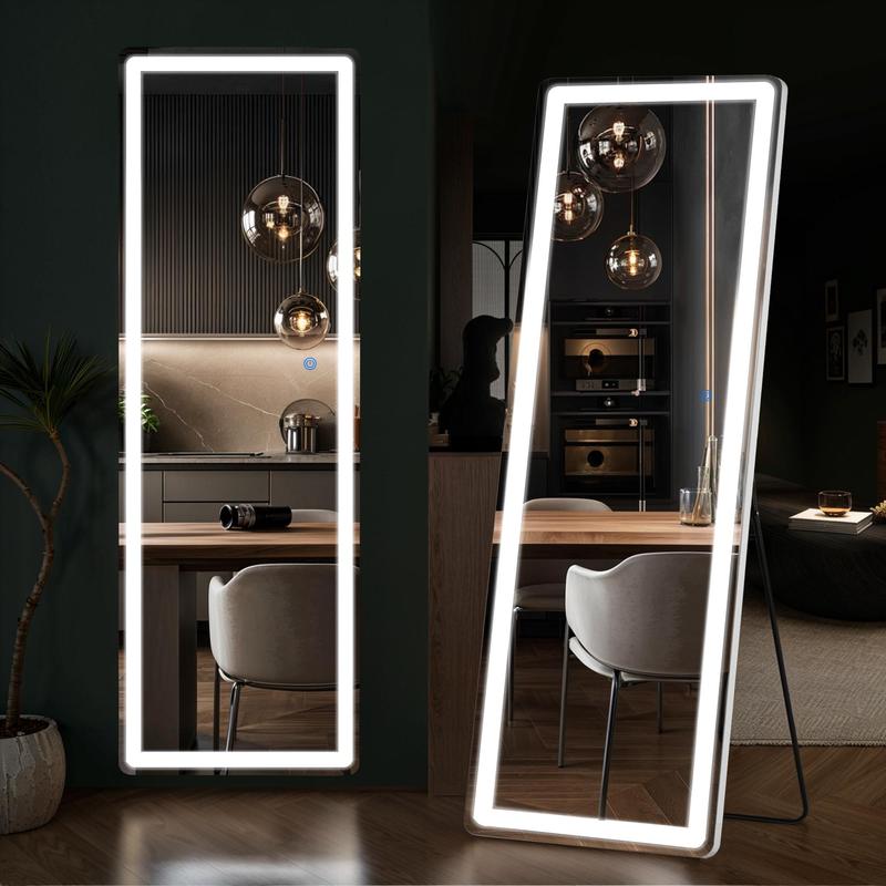 ·FULL SIZE: This LED lighted mirror is large enough to see your entire figure at a glance. It features a strip of 200 LED beads for more concentrated and brighter lighting, while also being energy-efficient. This is not just a floor mirror, but also a piece of art that enhances your home and brings you joy every day.