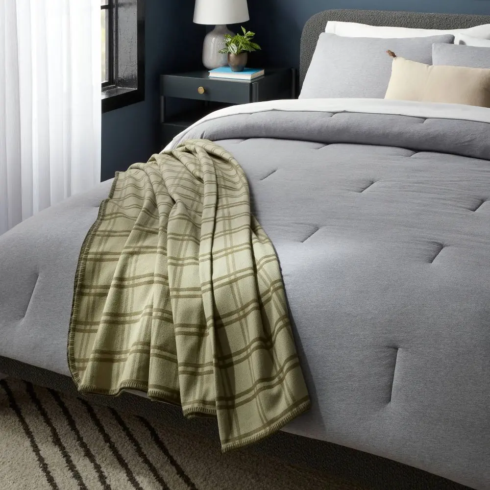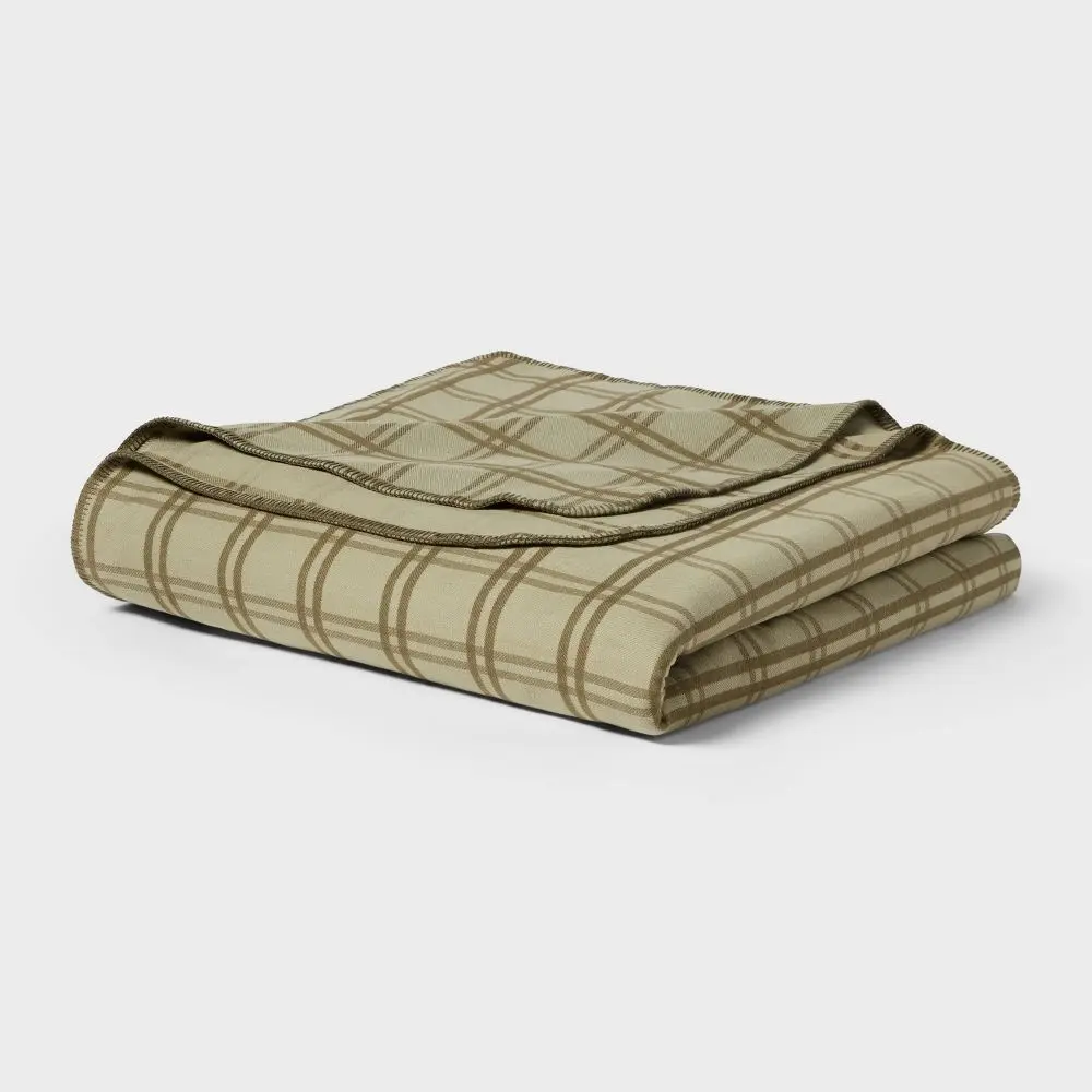 Full/Queen Brushed Cotton Blanket Green Tonal Plaid - Threshold