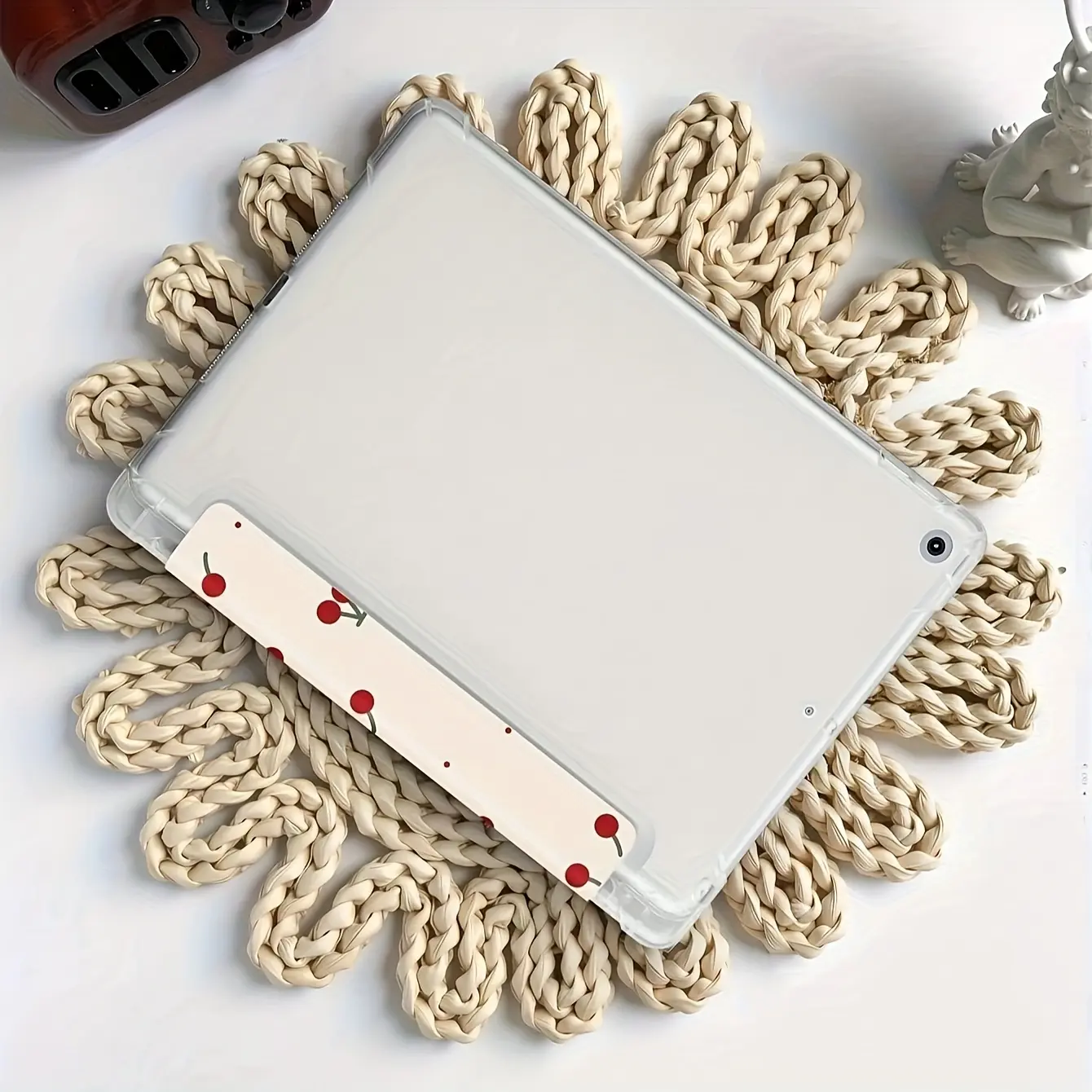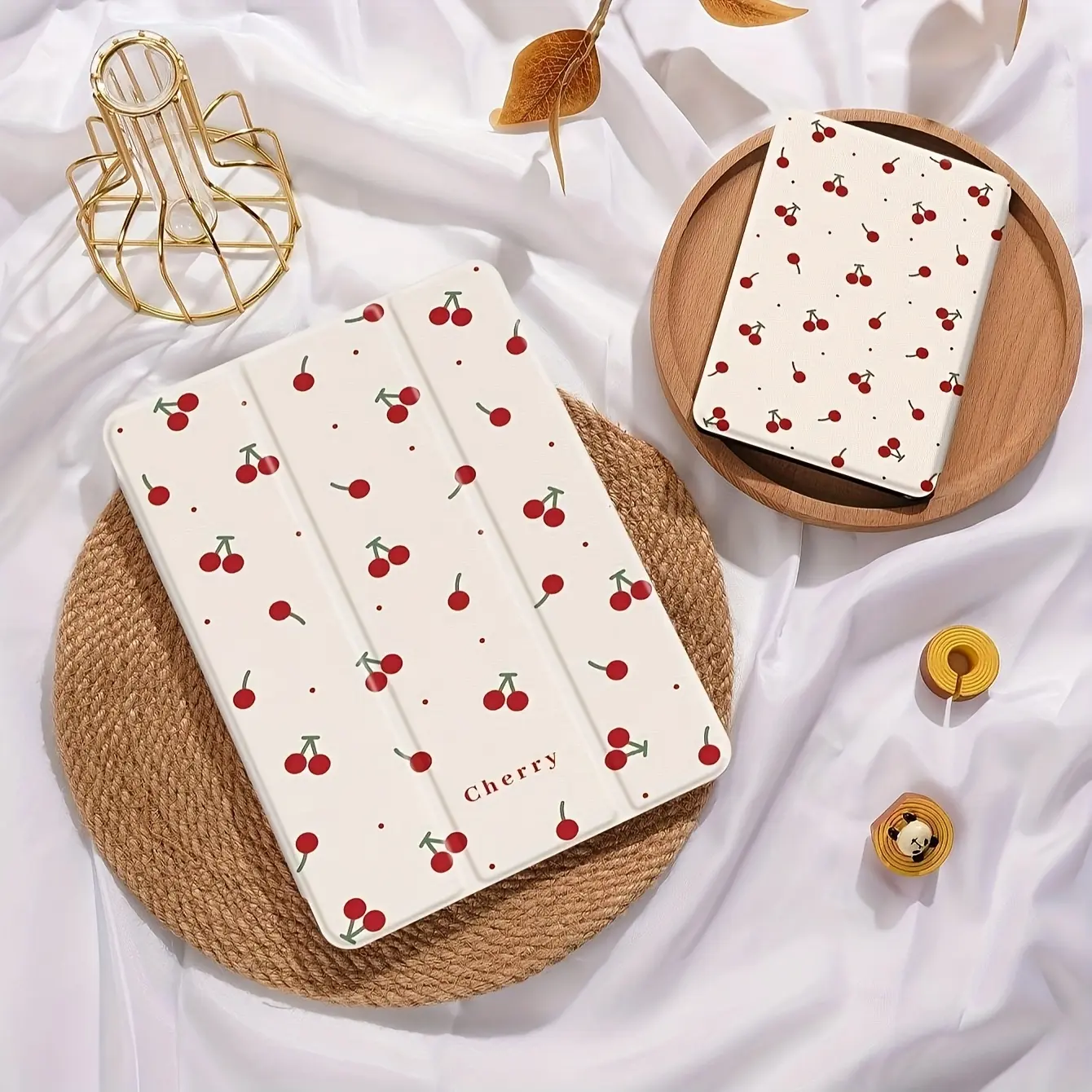 Full screen cherry pattern, with adjustable bracket and pen slot, foldable non-slip TPU protective case, suitable for iPad mini, iPad Air, iPad Pro/iPad 10th generation, 11th generation and other series of iPad protective cases