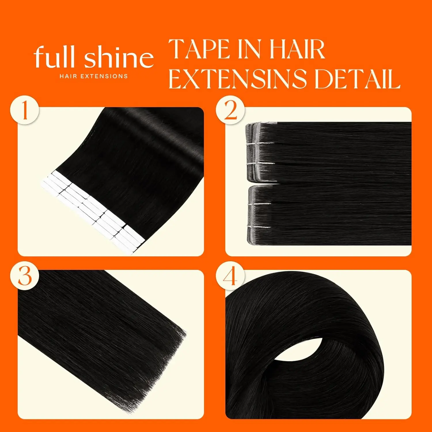 ¡Real Human HairďźFull Shine Tape in Hair Extensions Are Made From Real Human Hair For That Superior Extensions You DeserveďźGiving You A Natural Look While Being Gentle With Your Own HairďźOur Tape in Hair Extensions Are Very Soft And Silky