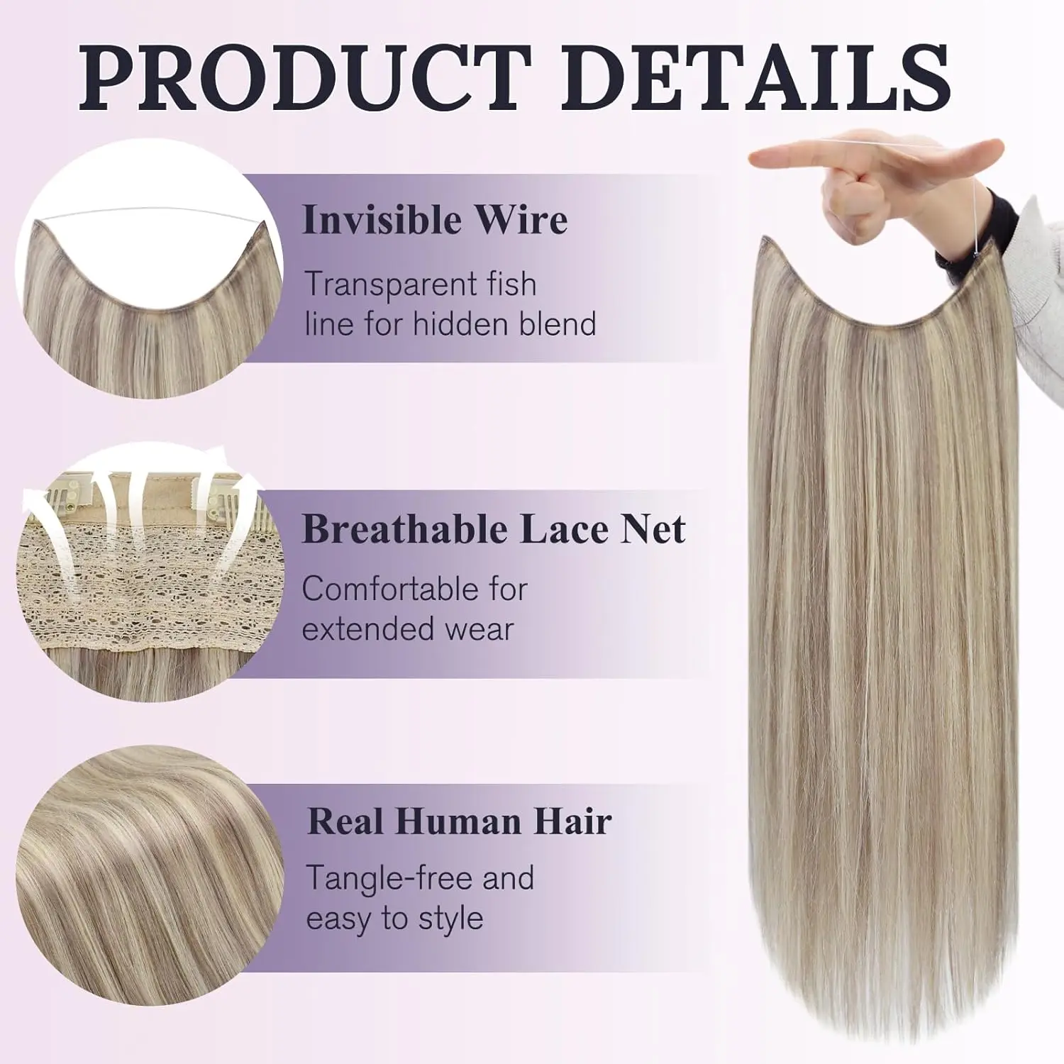 ·【Invisible Transparent Wire】Brown And Blonde Wire Hair Extensions Can Blend Well with Your Hair by The Adjustable Invisible Transparent Wire. Adjust Size by Tightening or Loosening The Fish Wire. Each Package Includes 2 Elastic Fish Lines for Replacement,The Length is 20cm and 25cm.