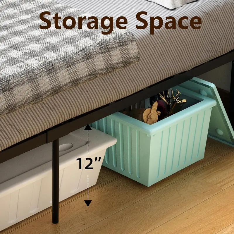 【Space saving】There is 12 inches of space under the metal bed frames, which provides you with enough storage space, optimizes space utilization, helps reduce clutter in the room, and keeps the room tidy and organized.