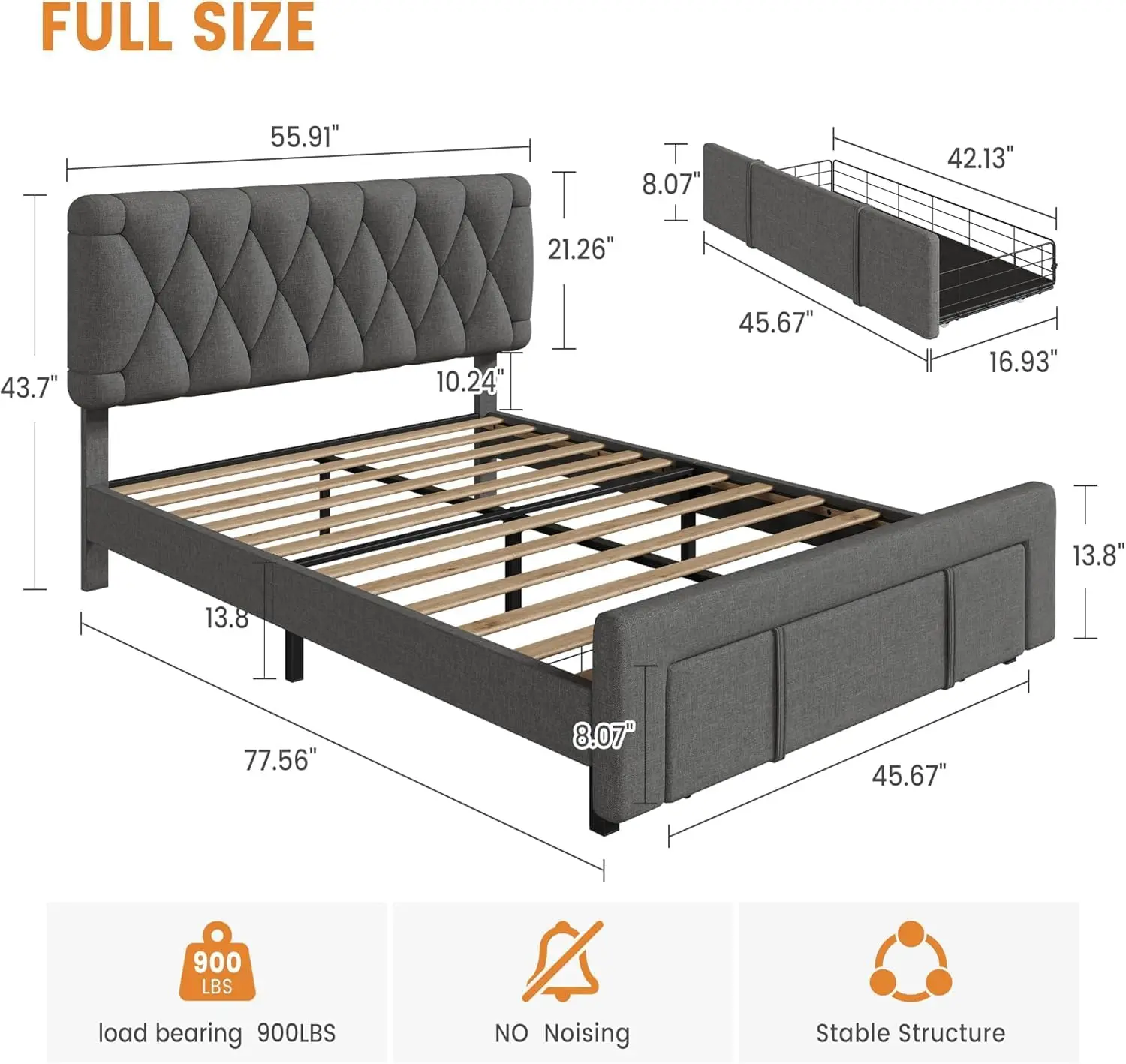 【Effortless Assembly and Exceptional Support】 Setting up your full size bed frame with storage is a breeze thanks to our user-friendly instructions. Should you have any questions about product quality or assembly, our dedicated customer service