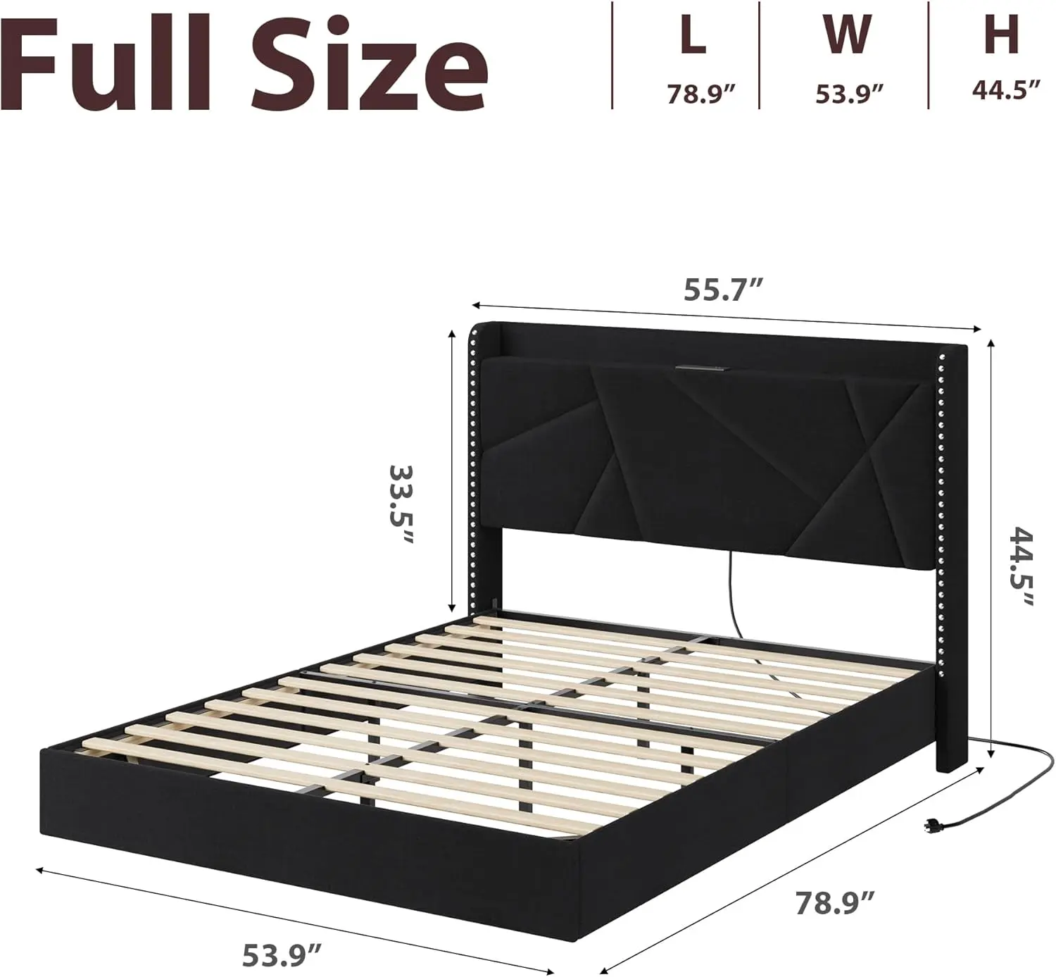 Storage Headboard with Charging Station-The floating bed frame with storage can store personal items used before going to bed for easy access In addition, the integrated charging base is equipped with 2 125V/12A AC power outlets and a USB port, charged your mobile phone, tablet or laptop while lying comfortably in bed Say goodbye to distant sockets and tangled wires, giving you a clean and convenient environment