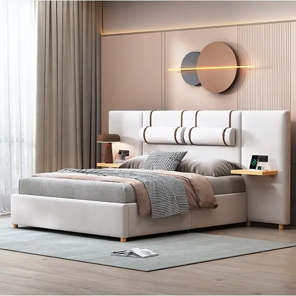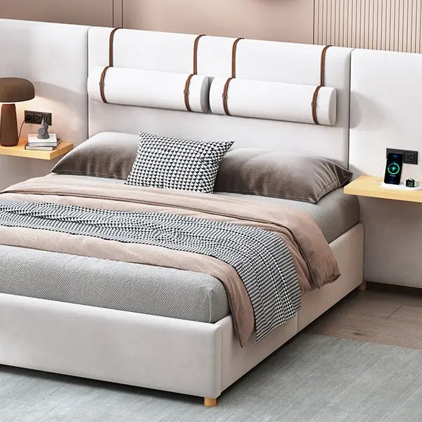·Convenient Power Outlets and USB Ports: Built-in power outlets and USB charging ports on both sides of the headboard for easy device charging.