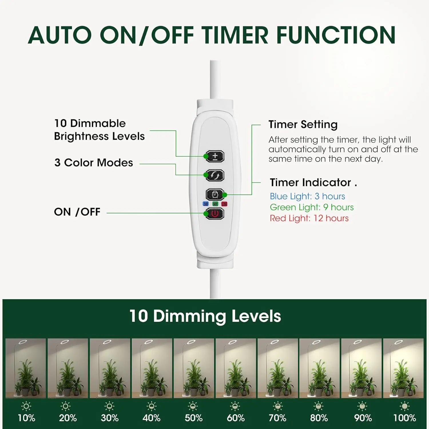the grow lamp for plants for indoor plants has 3/9/12 hour timing function. You can set your expected time, no need to manually turn the light on or off every day. Turn on the timer function to ensure that your plants can continuously absorb energy, which is very important for the healthy growth of plants.