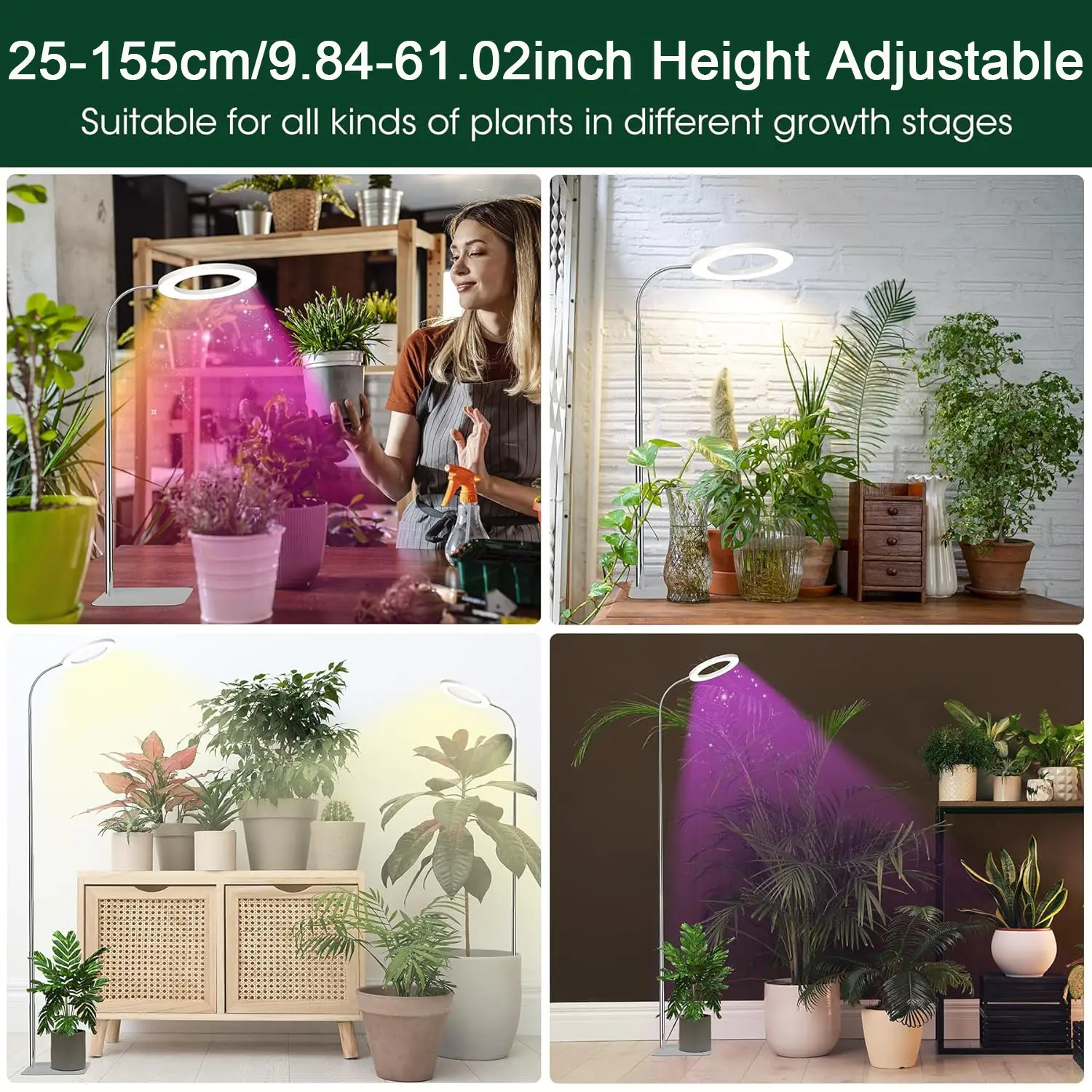Dual Purpose with base and earth stick, just stick plant light for indoor plants in a potted plant, or put the flowerpot on the base of plant light, adjust height and angle, then turn it on. 1-step installation, quick and easy! This indoor plant light has a telescopic pole (25-155 cm/9-61 inch) that can be retracted up and down. You can adjust the appropriate height for plant growth, and a large area or more plants will be covered when the pole is extended longer.