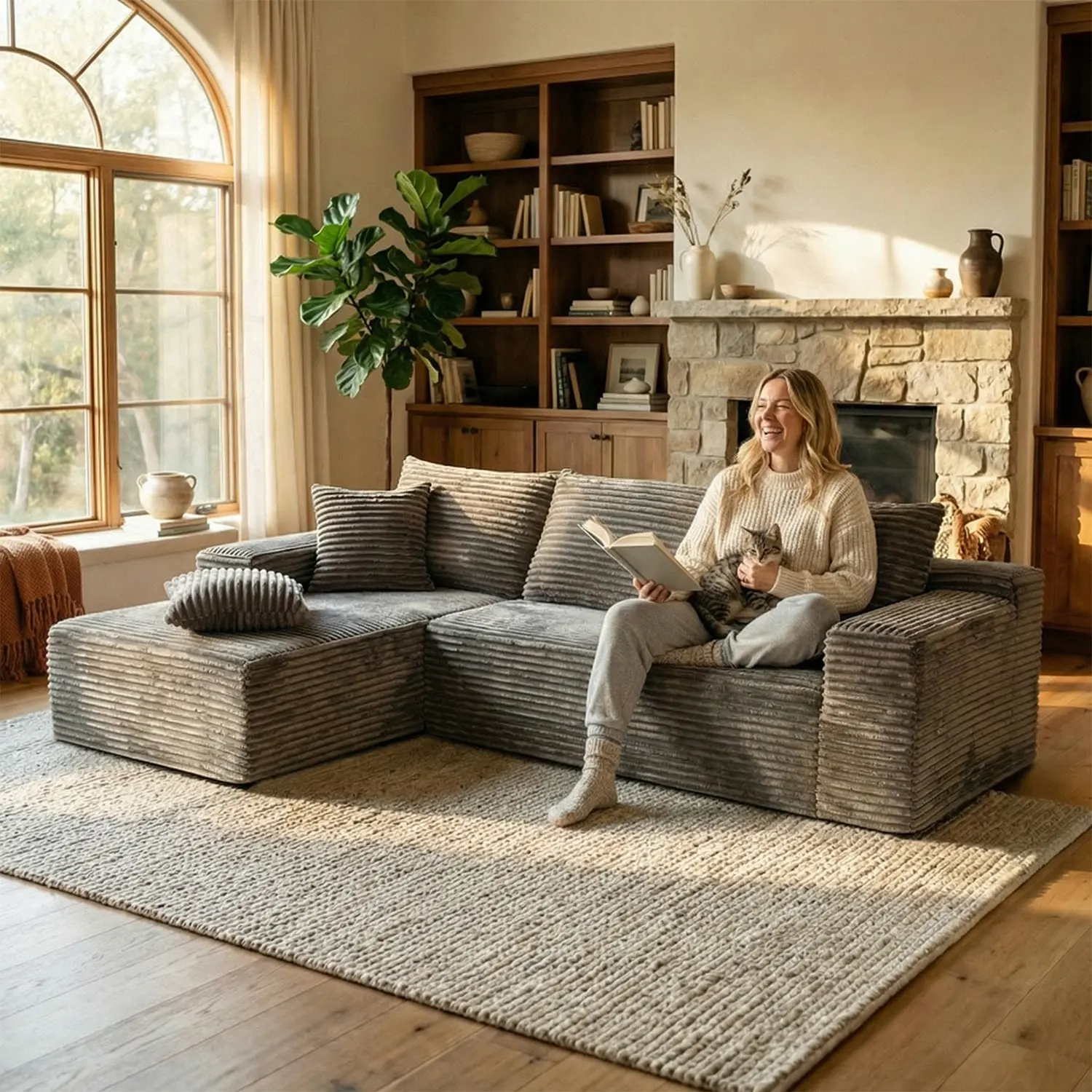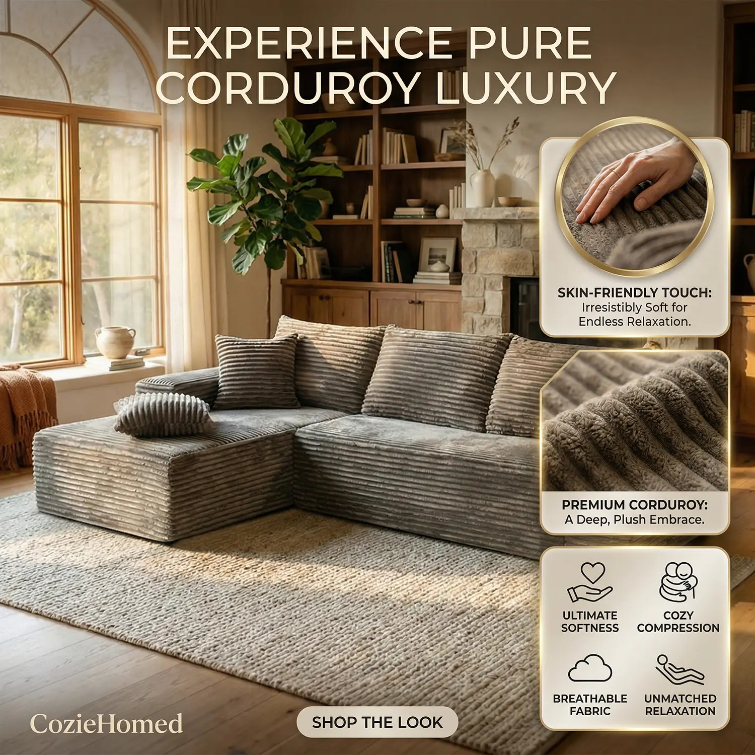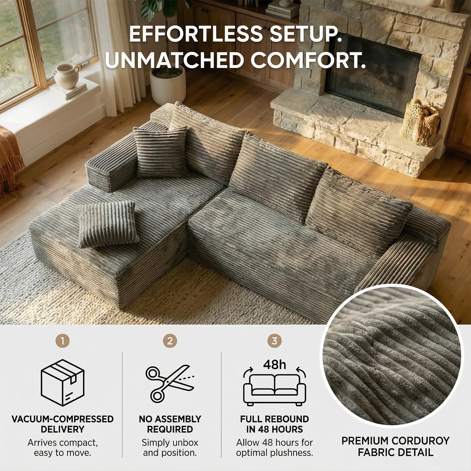 Full-Sponge Vacuum-Compressed Sofa, Bone-Free Design for Living Room/Bedroom, No Assembly Required, Modular Velvet Cloud Velvet Sofa that Converts into a Double Sofa Bed