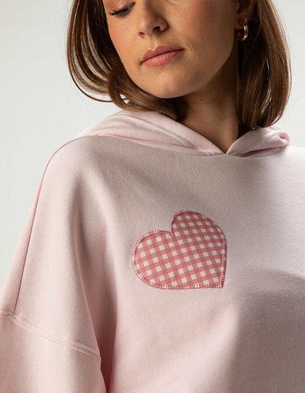 Full Tilt Heart Applique Hoodie. The Full Tilt Heart Applique Hoodie is a cozy and cute addition to your casual wardrobe. Featuring four heart appliques sewn on the front, this hoodie adds a playful, feminine touch to a classic style. It includes a front pouch pocket, a fixed hood, and long sleeves with cuffed ends and hem for a comfortable fit. Made with a soft fleece lining, this hoodie provides warmth and softness, making it perfect for lounging or casual outings. 60% Cotton 40% Polyester. Machine wash. Imported.