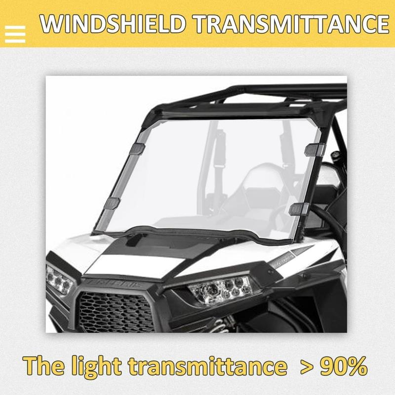 ·FITMENT- Full Clear Windshield Compatible with 2015-2018 Polaris RZR 4 900/XC 900; 2015 -2020 Polaris RZR 900/S 900; 2014 -2020 Polaris RZR S 1000; 2016 -2018 Polaris RZR XP TURBO/XP 4 TURBO; 2019-2021 Polaris RZR S 4 1000; 2018 Polaris RZR S4 900 EPS; 2014-2018 Polaris RZR XP 1000/XP 4 1000.