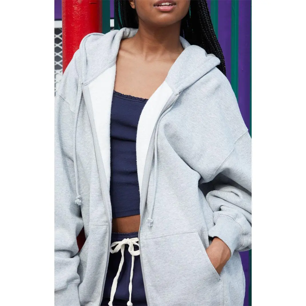 Keeping cozy is easy in the new Heather Grey Full Zip Hoodie from John Galt. This classic hoodie features a drawstring hood, long sleeves, side pockets, full zipper front closure, and an oversized fit.