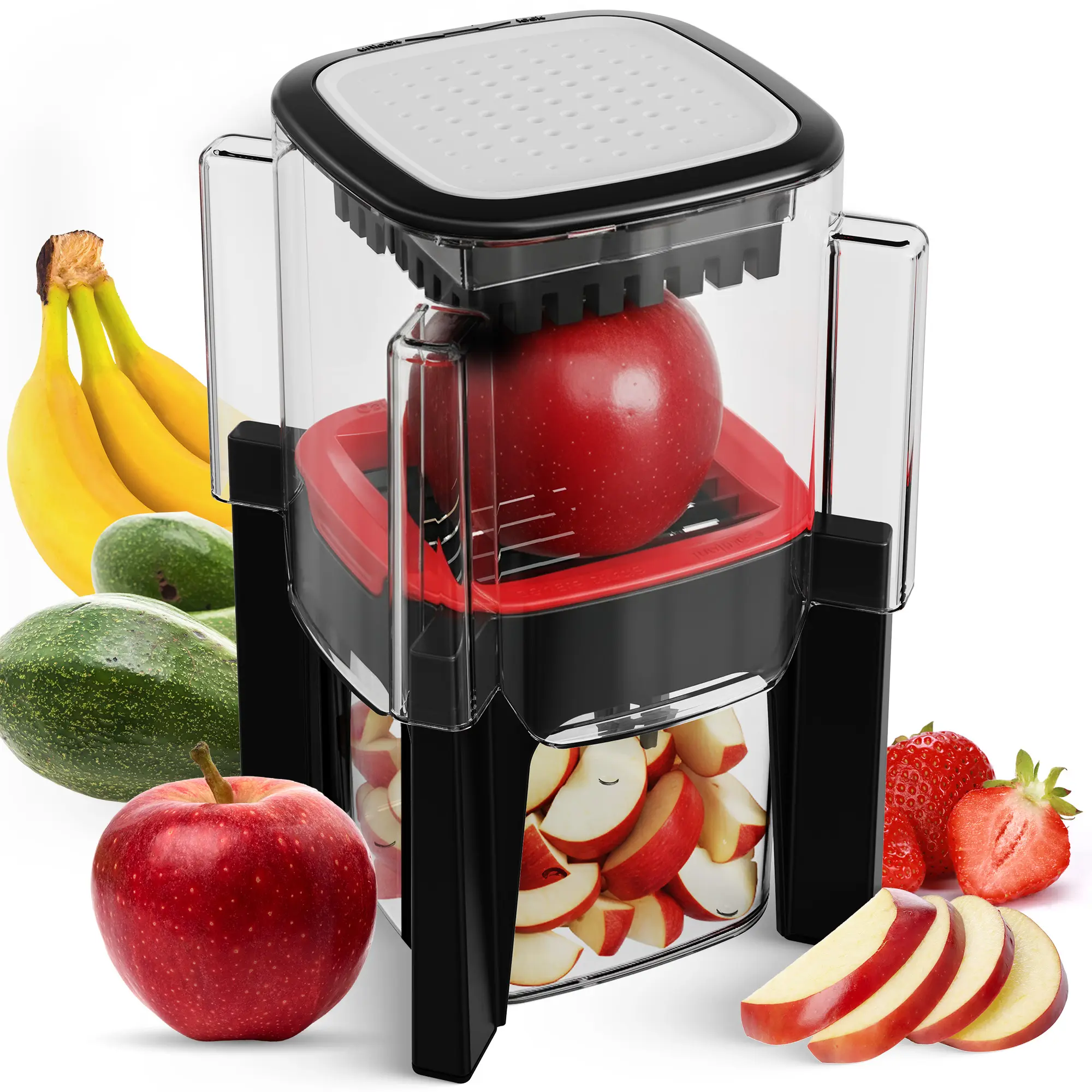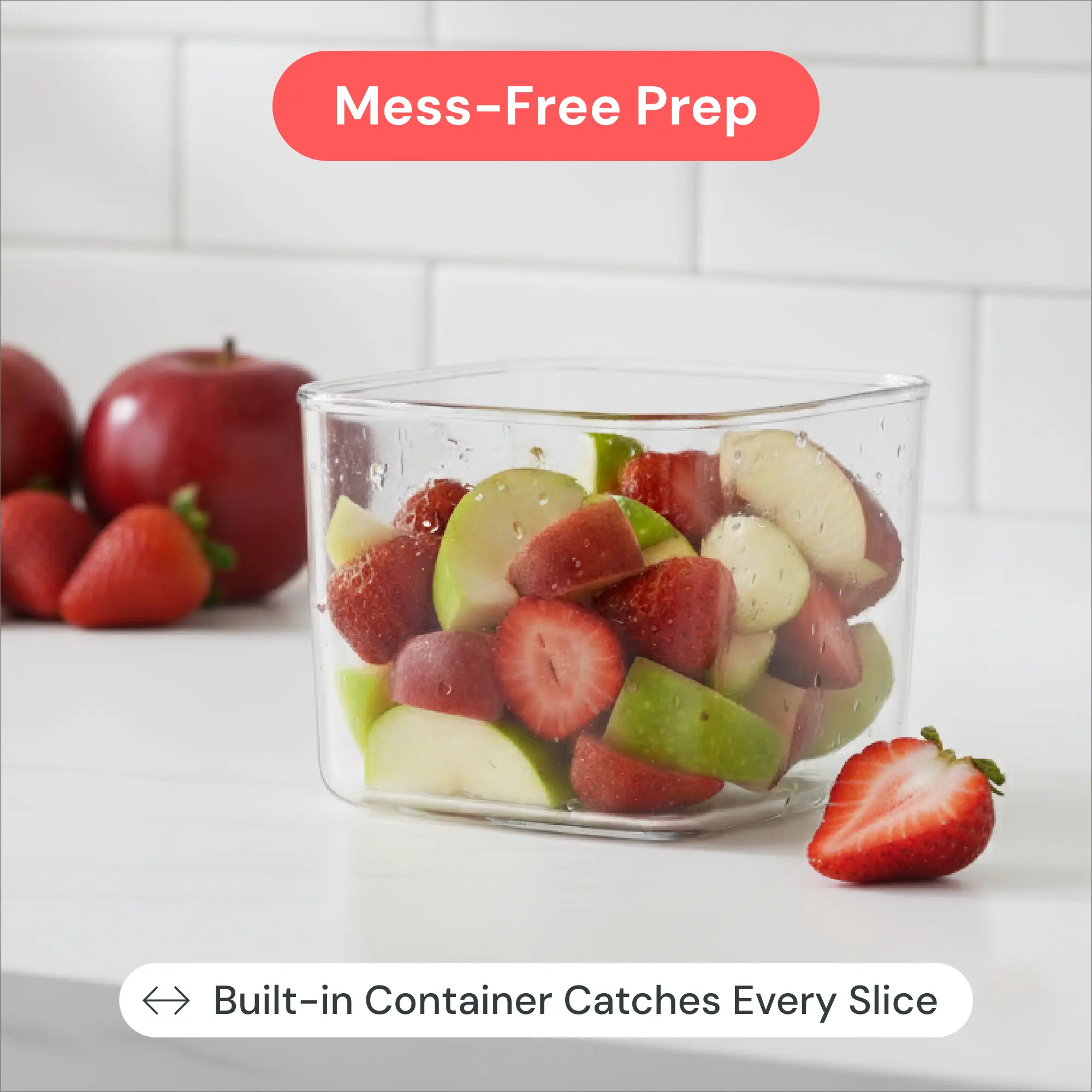 Built-In Catch Container: Every slice lands gracefully in the container. Zero wandering fruit pieces. Zero chaos.